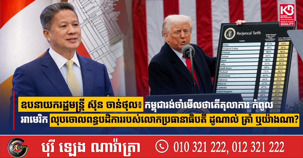 ឧបនាយករដ្ឋមន្ត្រី ស៊ុន ចាន់ថុល៖ កម្ពុជារង់ចាំមើលថាតើតុលាការកំពូលអាមេរិក លុបចោលពន្ធបដិការរបស់លោកប្រធានាធិបតី ដូណាល់ ត្រាំ ឬយ៉ាងណា? (Video inside)