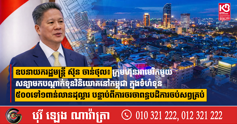 ឧបនាយករដ្ឋមន្រ្តី ស៊ុន ចាន់ថុល៖ ក្រុមហ៊ុនអាមេរិកមួយ សន្យាមកបណ្តាក់ទុនវិនិយោគនៅកម្ពុជា ក្នុងទំហំទុន ៥០០ទៅ១ពាន់លានដុល្លារ បន្ទាប់ពីការចរចាពន្ធបដិការចប់សព្វគ្រប់ (Video inside)