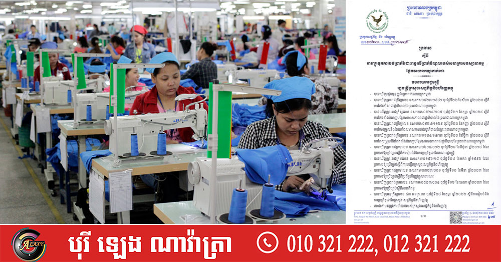 រាជរដ្ឋាភិបាលសម្រេចព្យួរទុកការបង់ប្រាក់រំដោះពន្ធលើប្រាក់ចំណូល របស់សហគ្រាសឧស្សាហកម្ម ផ្នែកវាយនភណ្ឌកាត់ដេរ រហូតដល់ដំណាច់ឆ្នាំ២០២៨ (Video inside)