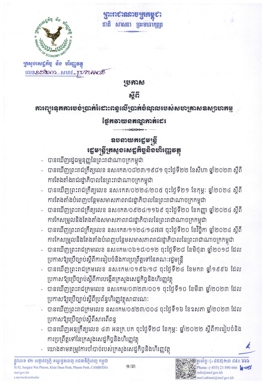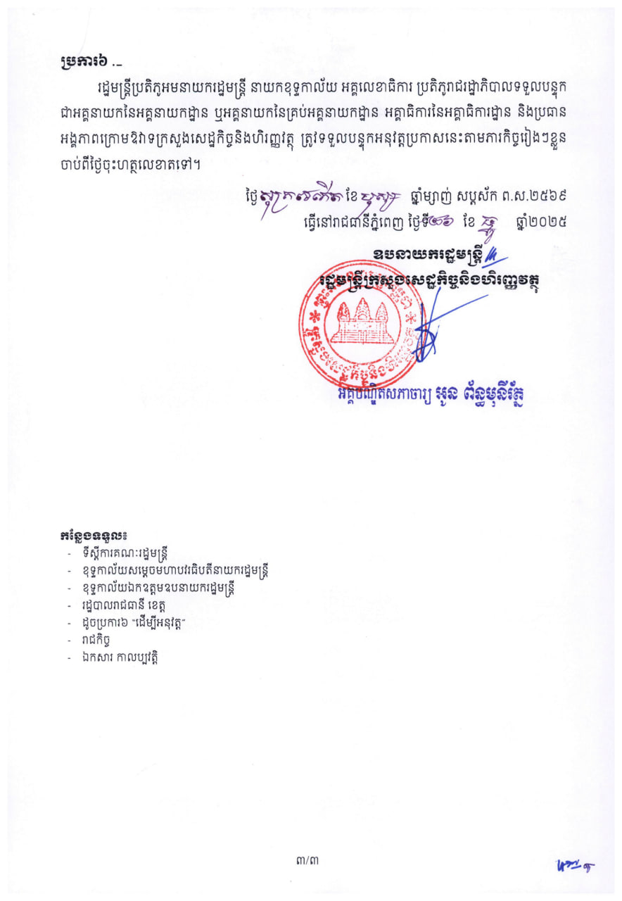 សហគ្រាសដូចមានចែងក្នុងប្រការ២ នៃប្រកាសនេះ ត្រូវបានអនុគ្រោះព្យួរទុកជាបណ្តោះអាសន្ននូវការបង់ប្រាក់រំដោះពន្ធលើប្រាក់ចំណូលប្រចាំខែ រហូតដល់ដំណាច់ឆ្នាំ២០២៨។