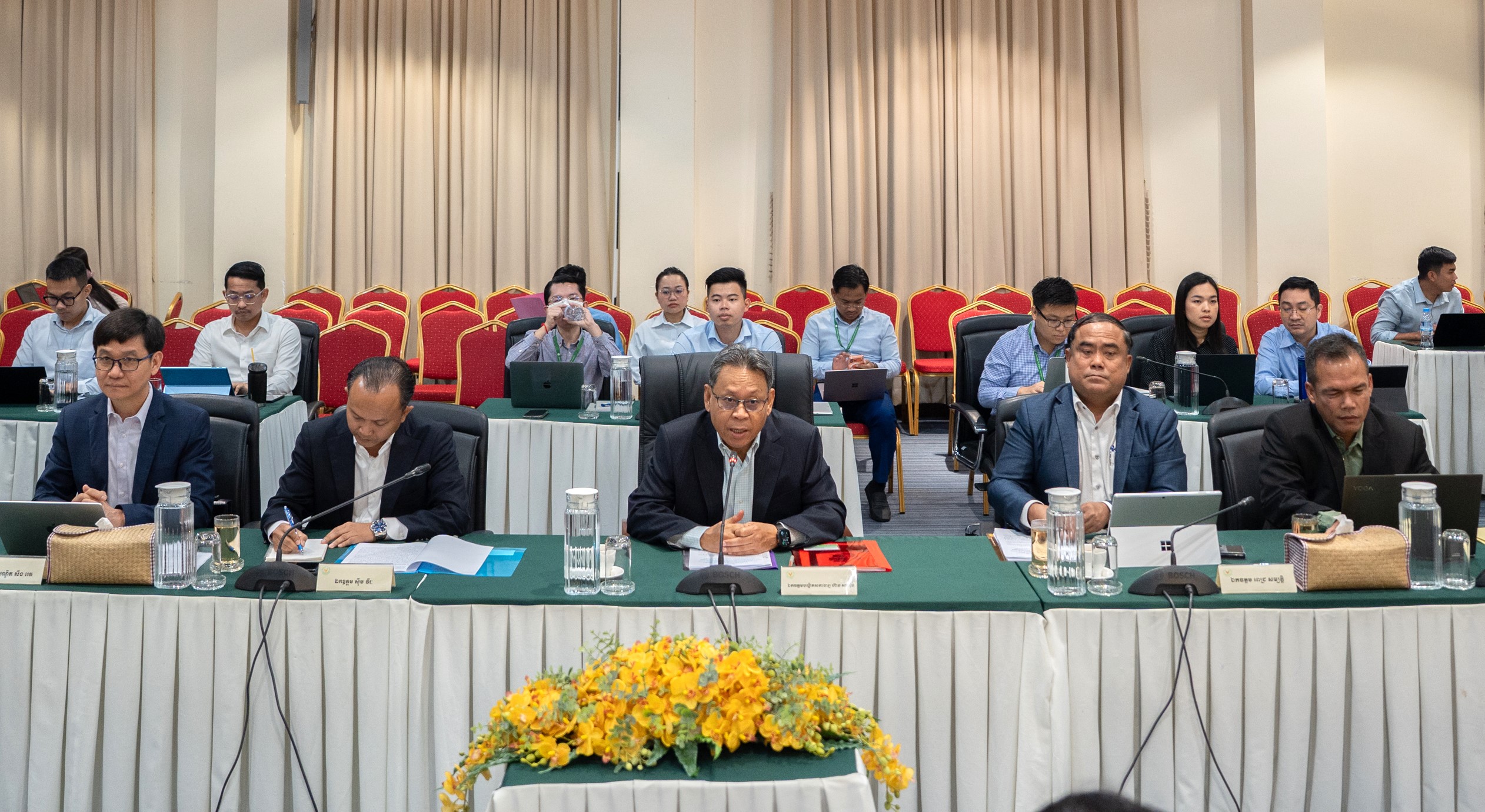 (ភ្នំពេញ)៖ បណ្ឌិតសភាចារ្យ ហ៊ាន សាហ៊ីប ទីប្រឹក្សាសម្តេចធិបតីនាយករដ្ឋមន្រ្តី និង ជាប្រធានក្រុមការងារជំរុញការវិនិយោគក្នុងភូមិភាគឦសាន នាព្រឹកថ្ងៃទី១៤ ខែមករា ឆ្នាំ២០២៦ បានដឹកនាំកិច្ចប្រជុំក្រុមការងារ ដើម្បីពិភាក្សាជំរុញការផ្តល់ការលើកទឹកចិត្តពិសេស ការអនុគ្រោះ និងការសម្របសម្រួលនីតិវិធីលើគម្រោងចំនួន ៣ ដែលទទួលបានការអនុម័តគោលការណ៍វិនិយោគពីរាជរដ្ឋាភិបាល នៅខេត្តក្រចេះ និងរតនៈគិរី និងការពិនិត្យទិដ្ឋភាពបច្ចេកទេសនៃគម្រោងទើបស្នើថ្មី ចំនួន១ គម្រោង នៅខេត្តក្រចេះ ។