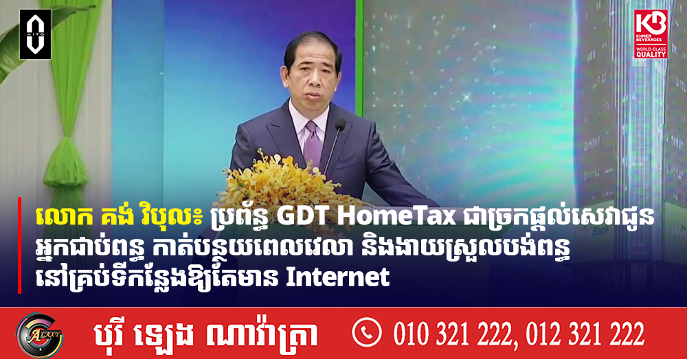 លោក គង់ វិបុល៖ ប្រព័ន្ធ GDT HomeTax ជាច្រកផ្តល់សេវាជូនអ្នកជាប់ពន្ធ កាត់បន្ថយពេលវេលា និងងាយស្រួលបង់ពន្ធ នៅគ្រប់ទីកន្លែងឱ្យតែមាន Internet (Video inside)