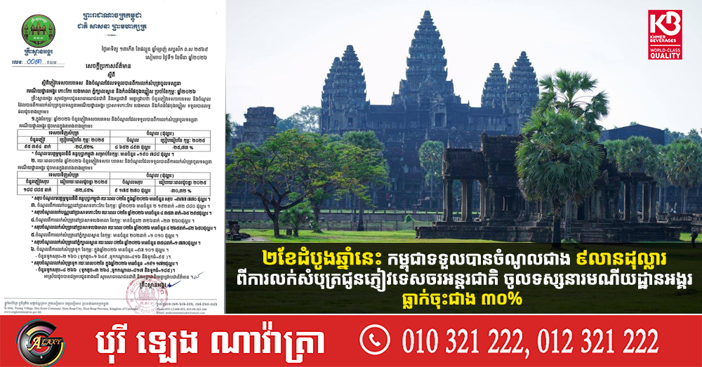 ២ខែដំបូងឆ្នាំនេះ កម្ពុជាទទួលបានចំណូលជាង ៩លានដុល្លារ ពីការលក់សំបុត្រជូនភ្ញៀវទេសចរអន្តរជាតិ ចូលទស្សនារមណីយដ្ឋានអង្គរ ធ្លាក់ចុះជាង ៣០% (Video inside)