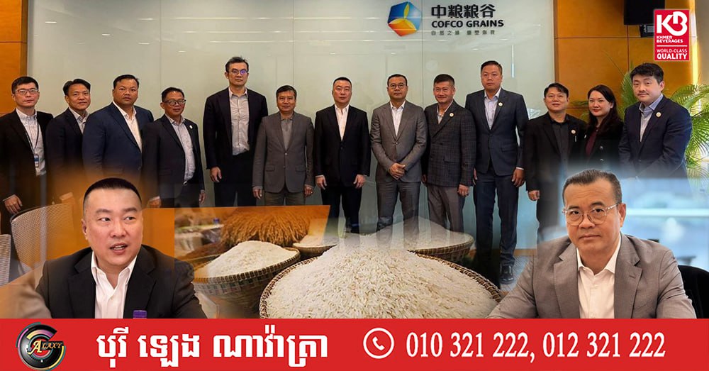 (ចិន)៖ លោកបណ្ឌិត កៅ ថាច ប្រតិភូរាជរដ្ឋាភិបាលទទួលបន្ទុកជាអគ្គនាយក ធនាគារអភិវឌ្ឍន៍ជនបទ និងកសិកម្ម និងឧកញ៉ា ឡាយ ឈួនហួ ប្រធានសហព័ន្ធស្រូវអង្ករកម្ពុជា នៅថ្ងៃទី៩ ខែមីនា ឆ្នាំ២០២៦ បានដឹកនាំសហការីជួបពិភាក្សាការងារ ជាមួយក្រុមហ៊ុនរដ្ឋ COFCO Grains នៅទីស្នាក់ការកណ្ដាលរបស់ក្រុមហ៊ុន នារដ្ឋធានីប៉េកាំង ប្រទេសចិន។