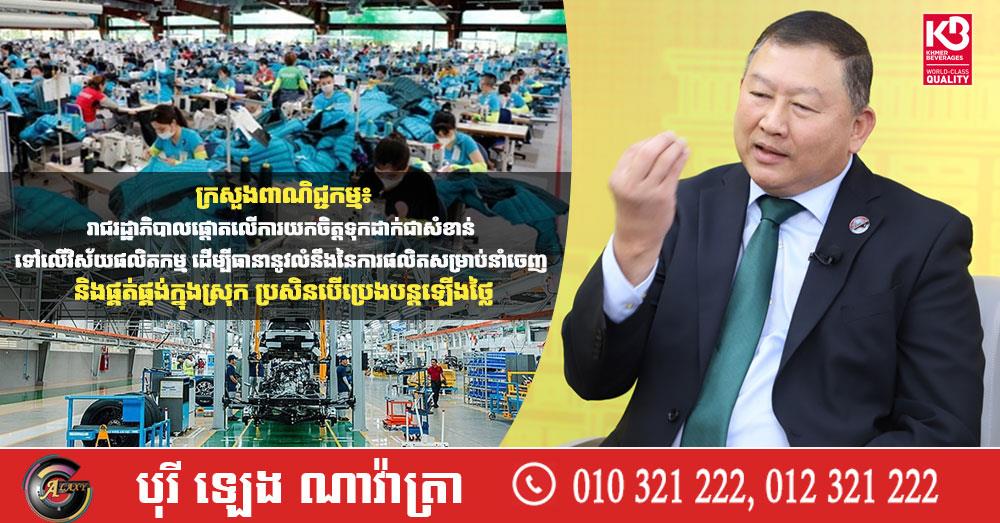 ក្រសួងពាណិជ្ជកម្ម៖ រាជរដ្ឋាភិបាលផ្តោតលើការយកចិត្តទុកដាក់ ជាសំខាន់ទៅលើវិស័យផលិតកម្ម ដើម្បីធានានូវលំនឹងនៃការផលិតសម្រាប់នាំចេញ និងផ្គត់ផ្គង់ក្នុងស្រុក ប្រសិនបើប្រេងបន្តឡើងថ្លៃ (Video inside)