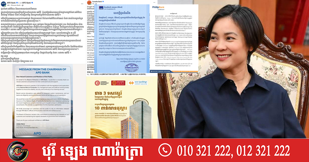 ធនាគារធំៗចេញមកអះអាងពីភាពរឹងមាំរបស់ប្រព័ន្ធធនាគារនៅកម្ពុជា ព្រមគ្នានឹងទេសាភិបាលធនាគារជាតិ អំពាវនាវកុំឱ្យពលរដ្ឋសម្រុកទៅដកប្រាក់ ព្រោះតែលឺពាក្យចចាមអារ៉ាមមិនពិត ! (Video inside)