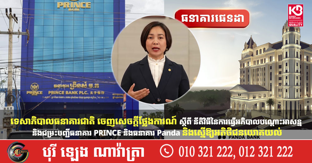 ទេសាភិបាលធនាគារជាតិ ចេញសេចក្ដីថ្លែងការណ៍ ស្ដីពី នីតិវិធីនៃការធ្វើអភិបាលបណ្ដោះអាសន្ន និងជម្រះបញ្ជីធនាគារ PRINCE និងធនាគារ Panda និងស្នើឱ្យអតិថិជនយោគយល់ (Video inside)