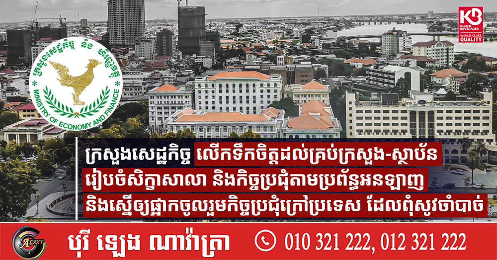 ក្រសួងសេដ្ឋកិច្ច លើកទឹកចិត្តដល់គ្រប់ក្រសួង-ស្ថាប័ន រៀបចំសិក្ខាសាលា និងកិច្ចប្រជុំតាមប្រព័ន្ធអនឡាញ និងស្នើឲ្យផ្អាកចូលរួមកិច្ចប្រជុំក្រៅប្រទេស ដែលពុំសូវចាំបាច់