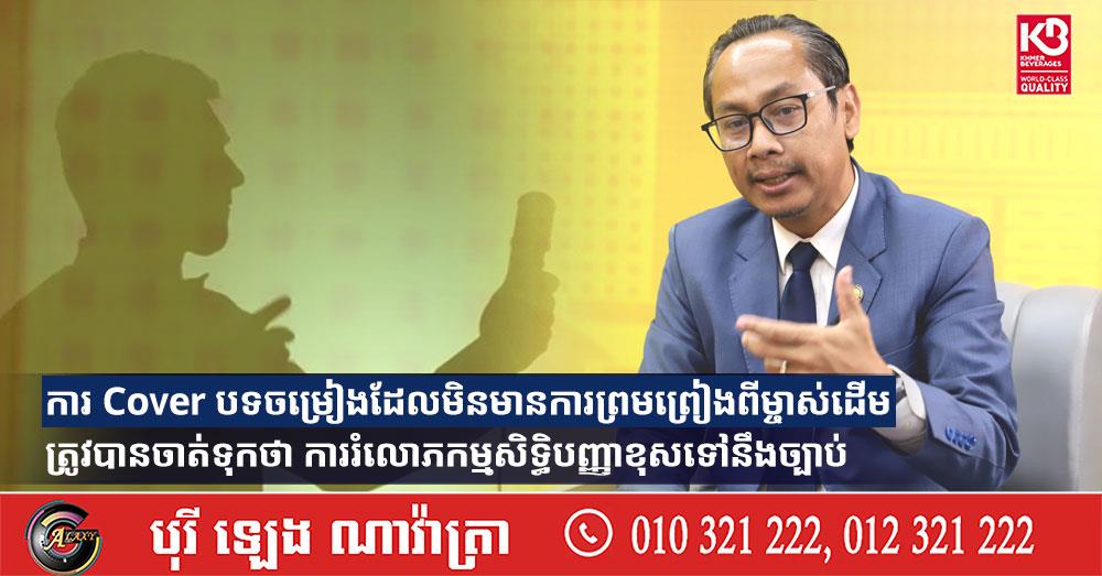 (ភ្នំពេញ)៖ លោកមេធាវី អុំ រតនា ប្រធានសមាគមកម្មសិទ្ធបញ្ញាកម្ពុជា បានលើកឡើងថា ការ Cover បទចម្រៀងដែលមិនមានការព្រមព្រៀងពីម្ចាស់ដើម ត្រូវបានចាត់ទុកថា ការរំលោភកម្មសិទ្ធិបញ្ញាខុសទៅនឹងច្បាប់។
