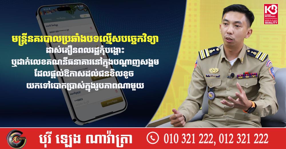 មន្រ្តីនគរបាលប្រឆាំងបទល្មើសបច្ចេកវិទ្យា ដាស់តឿនពលរដ្ឋកុំបង្ហោះ ឬដាក់លេខគណនីធនាគារ នៅក្នុងបណ្តាញសង្គម ដែលផ្តល់ឱកាសដល់ជនខិលខូច យកទៅបោកប្រាស់ក្នុងរូបភាពណាមួយ (Video inside)