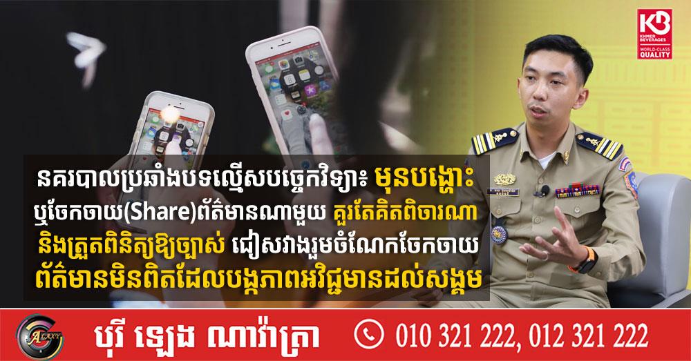 នគរបាលប្រឆាំងបទល្មើសបច្ចេកវិទ្យា៖ មុនបង្ហោះ ឬចែកចាយ (Share) ព័ត៌មានណាមួយ គួរតែគិតពិចារណា និងត្រួតពិនិត្យឱ្យច្បាស់ ជៀសវាងរួមចំណែកចែកចាយព័ត៌មានមិនពិត ដែលបង្កភាពអវិជ្ជមានដល់សង្គម (Video inside)