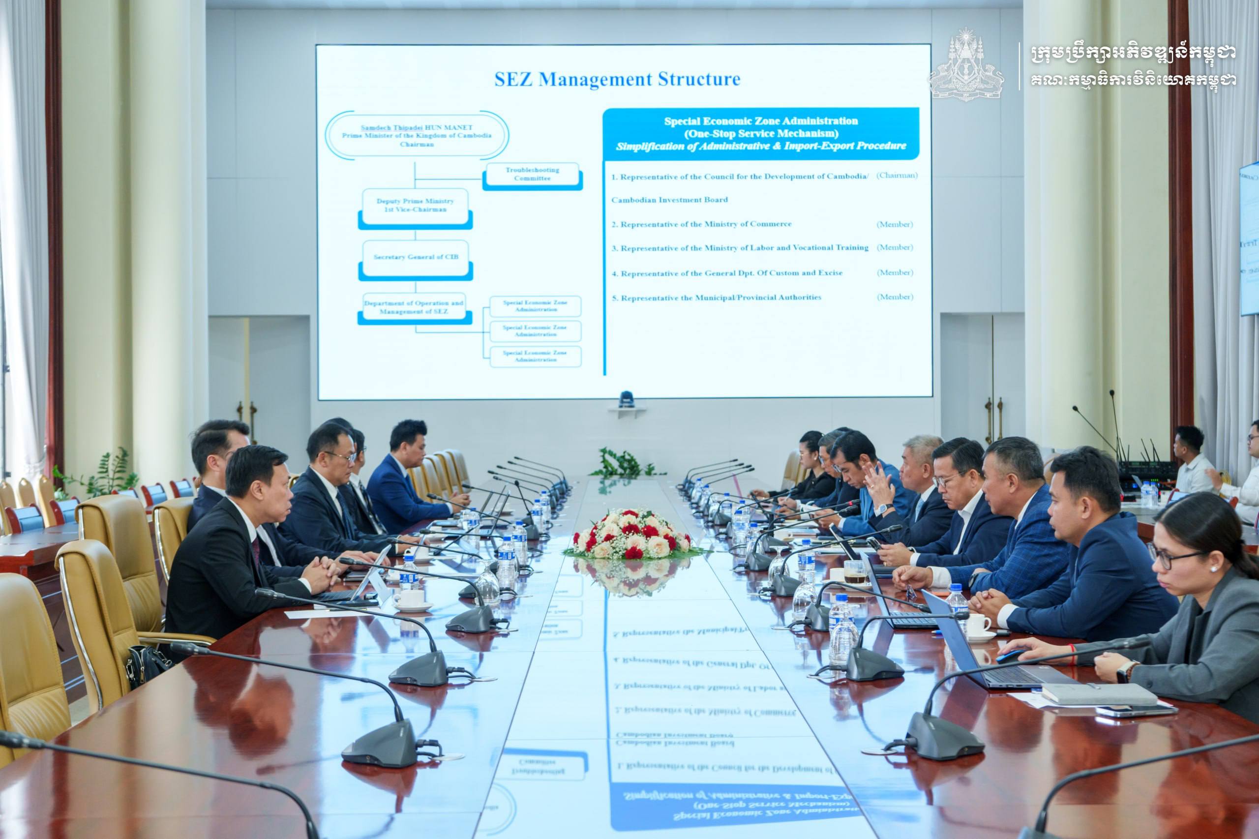 លោក ជា វុទ្ធី បានស្វាគមន៍យ៉ាងកក់ក្តៅជូនចំពោះគណៈប្រតិភូ និងបានជម្រាបជូនគណៈប្រតិភូដោយសង្ខេបពីសាវតា និងរចនាសម្ព័ន្ធរបស់ ក.អ.ក. និងការអភិវឌ្ឍតំបន់សេដ្ឋកិច្ចពិសេសកម្ពុជា ក្រោមគំនិតផ្តួចផ្តើមដ៏ខ្ពង់ខ្ពស់របស់សម្តេចតេជោ ហ៊ុន សែន អតីតនាយករដ្ឋមន្ត្រី និងបច្ចុប្បន្នជាប្រធានព្រឹទ្ធសភា។