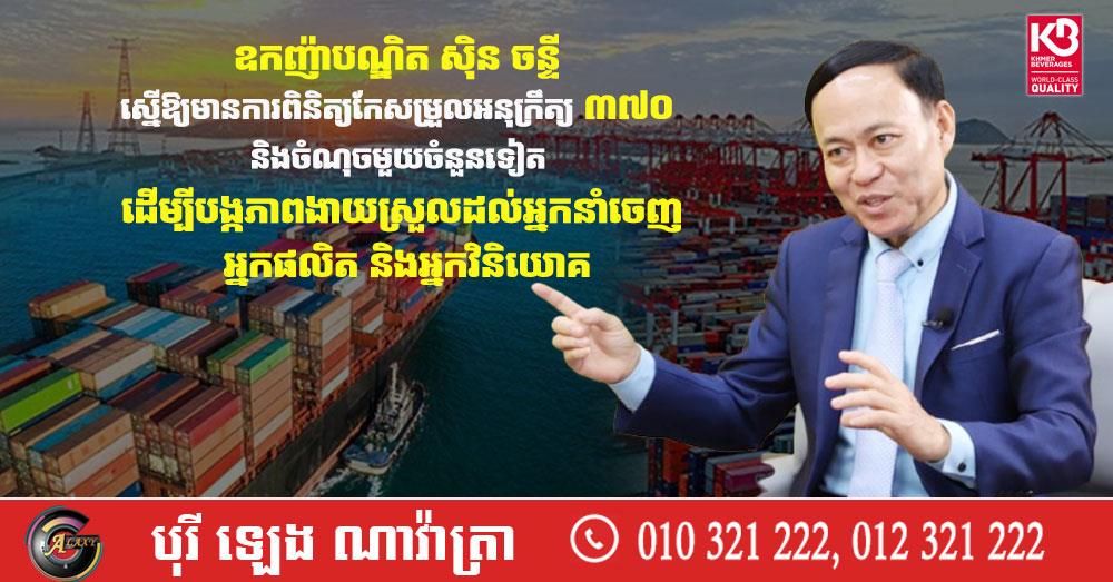 ឧកញ៉ាបណ្ឌិត ស៊ិន ចន្ធី ស្នើឱ្យមានការពិនិត្យកែសម្រួលអនុក្រឹត្យ៣៧០ និងចំណុចមួយចំនួនទៀត ដើម្បីបង្កភាពងាយស្រួលដល់អ្នកនាំចេញ អ្នកផលិត និងអ្នកវិនិយោគ (Video inside)