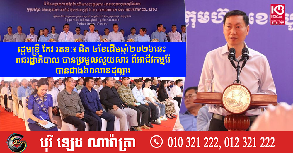 រដ្ឋមន្ត្រី កែវ រតនៈ៖ ជិត ៤ខែដើមឆ្នាំ២០២៦នេះ រាជរដ្ឋាភិបាល បានប្រមូលសួយសារ ពីអាជីវកម្មរ៉ែបានជាង៦០លានដុល្លារ (Video inside)