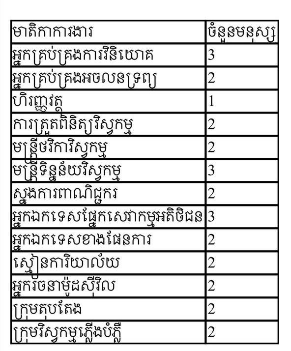 ដំណឹងជ្រើសរើសបុគ្គលិក