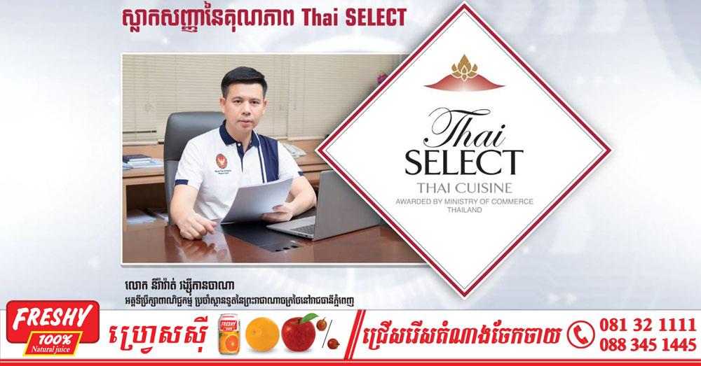 ម្យ៉ាងទៀត បច្ចុប្បន្ននេះ នៅទូទាំងពិភពលោកមានភោជនីយដ្ឋានថៃ ដែលទទួលបានស្លាកសញ្ញា Thai SELECT រួចមកហើយចំនួន 1546 កន្លែង ដោយក្នុងនោះ នៅប្រទេសកម្ពុជាមានភោជនីយដ្ឋានថៃ ចំនួន 39 កន្លែង ដែលទទួលបានស្លាកសញ្ញា Thai SELECT ។