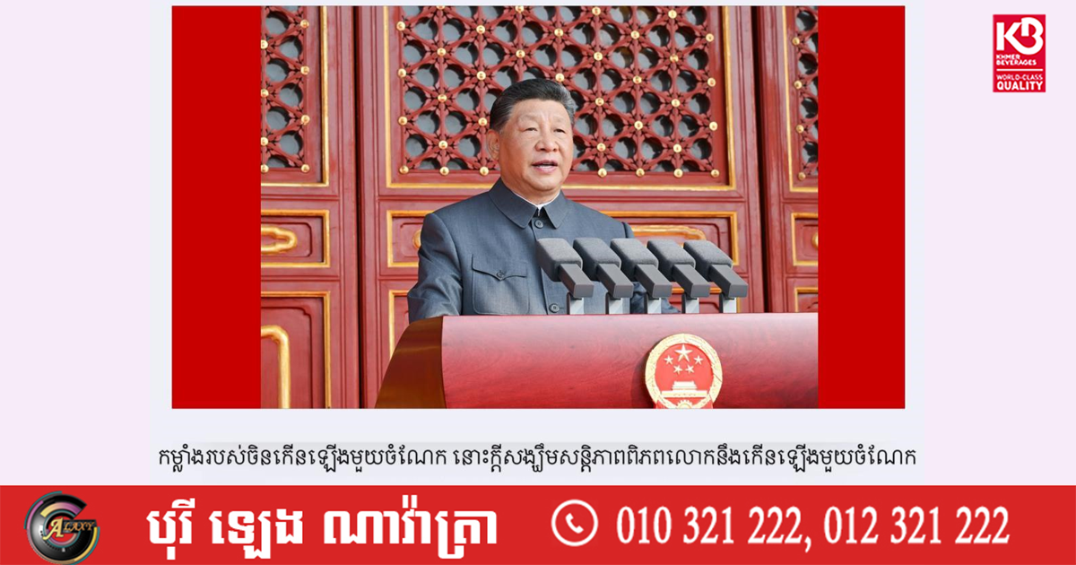 សន្តិភាពត្រូវការតស៊ូដណ្ដើមយក សន្តិភាពត្រូវការគាំពារ។លោក Xi Jinping ប្រធានរដ្ឋចិនបានគូសបញ្ជាក់យ៉ាងច្បាស់ថា កម្លាំងរបស់ចិនកើនឡើងមួយចំណែក នោះក្ដីសង្ឃឹមសន្តិភាពពិភពលោកនឹងកើនឡើងមួយចំណែក៕