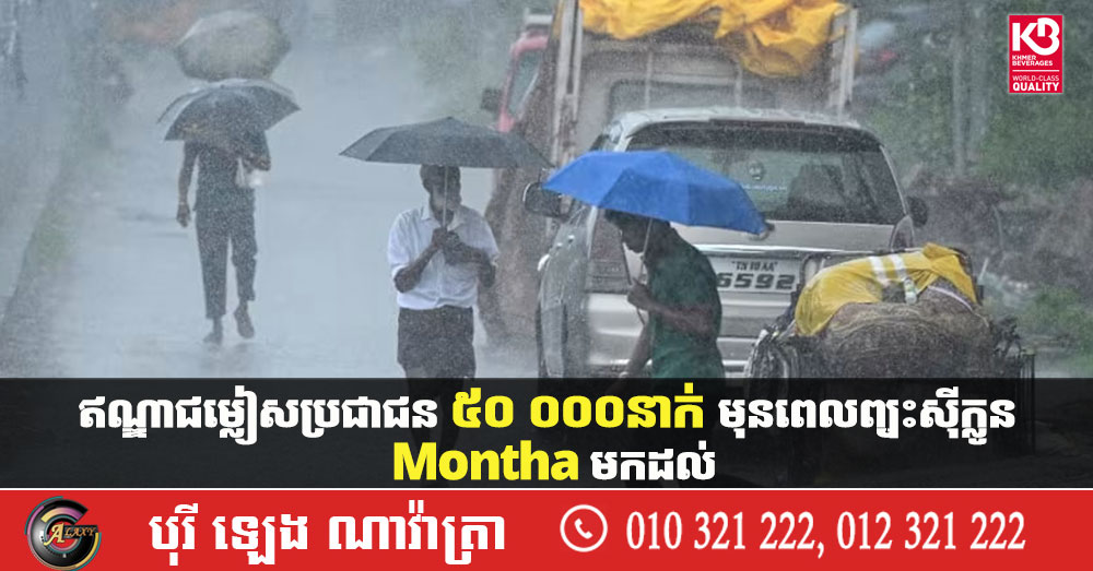 (ញូវដេលី)៖ ប្រជាជនឥណ្ឌា ៥០ ០០០នាក់ ត្រូវបានបញ្ជូនទៅកាន់ជំរំសុវត្ថិភាព នាថ្ងៃចន្ទ ទី២៧ ខែតុលានេះ ដែលជាការជម្លៀសមុនមួយថ្ងៃ មុនពេលព្យុះស៉ីក្លូន Montha បោកបក់មកលើឆ្នេរសមុទ្រ Bengal និងដែលត្រូវបានព្យាករណ៍ថា មានកម្លាំងខ្យល់ និងភ្លៀងធ្លាក់ខ្លាំងនៅឆ្នេរភាគខាងកើត។ នេះបើយោងតាមការចេញផ្សាយដោយទីភ្នាក់ងារសាព័ត៌មាន Reuters។