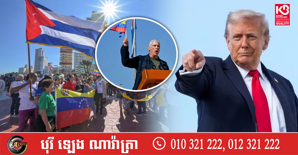 (វ៉ាស៉ីនតោន)៖ កាលពីថ្ងៃអាទិត្យចុងសប្តាហ៍កន្លងទៅ ប្រធានាធិបតីអាមេរិក លោក ដូណាល់ ត្រាំ បាននិយាយថា គ្មានឡើយប្រេងវ៉េណេស៊ុយអេឡា ឬលុយហូរចូលទៅកាន់គុយបាទៀតទេ ហើយប្រទេសកុម្មុយនីសមួយនេះ គួរតែធ្វើកិច្ចព្រមព្រៀងជាមួយសហរដ្ឋអាមេរិក ប៉ុន្តែប្រធានាធិបតីគុយបា លោក Miguel Diaz-Canel បានច្រានចោលការគំរាមនេះ ដោយនិយាយថា សហរដ្ឋអាមេរិកគ្មានសិទ្ធិអំណាចបង្ខំគុយបាឡើយ។ នេះបើយោងតាមការចេញផ្សាយដោយទីភ្នាក់ងារសារព័ត៌មាន Reuters នៅថ្ងៃចន្ទ ទី១២ ខែមករា ឆ្នាំ ២០២៦។