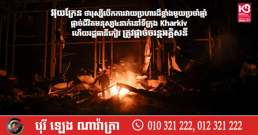 អ៊ុយក្រែន ថារុស្ស៉ីបើកការវាយប្រហារដ៏ខ្លាំងមួយប្រចាំឆ្នាំ ផ្តាច់ជីវិតមនុស្ស៤នាក់នៅទីក្រុង Kharkiv ហើយរដ្ឋធានីកៀវ ត្រូវផ្តាច់ចរន្តអគ្គិសនី