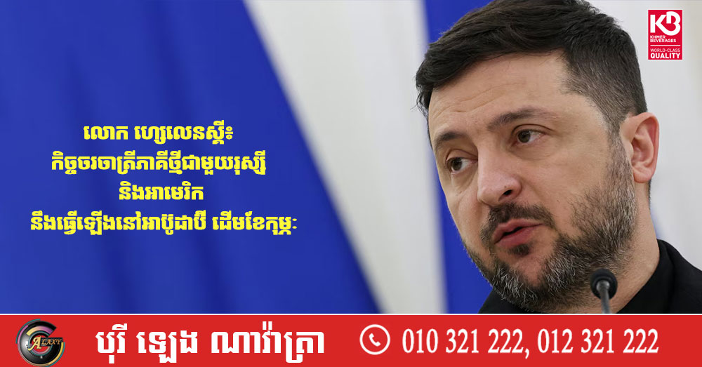 (កៀវ)៖ ប្រធានាធិបតីអ៊ុយក្រែន លោក វ៉ូឡូឌីមៀ ហ្សេលេនស្គី បានប្រកាសនៅថ្ងៃអាទិត្យនេះថា ជុំថ្មីនៃកិច្ចចរចាត្រីភាគីរវាងអ៊ុយក្រែន និងរុស្ស៊ី ក្រោមការសម្របសម្រួលរបស់សហរដ្ឋអាមេរិក នឹងប្រព្រឹត្តទៅនៅទីក្រុងអាប៊ូដាប៊ី នៅថ្ងៃទី៤ និងទី៥ ខែកុម្ភៈ។ នេះបើតាមការចេញផ្សាយ ដោយទីភ្នាក់ងារសារព័ត៌មាន Reuters។