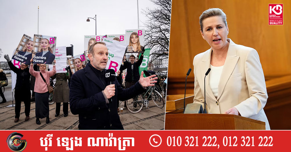(កូប៉ិនហាក)៖ នាយករដ្ឋមន្ត្រីដាណឺម៉ាក លោកស្រី Mette Frederiksen បាននិយាយថា ដាណឺម៉ាកនឹងរៀបចំការបោះឆ្នោតសកល នៅថ្ងៃទី២៤ ខែមីនា ខណៈដែលលោកស្រីស្វែងរកការគាំទ្រថែមទៀត សម្រាប់គោលជំហរប្រឆាំងនឹងសម្ពាធពីសហរដ្ឋអាមេរិក ពាក់ព័ន្ធបញ្ហាដែនដី Greenland។ នេះបើយោងតាមការចេញផ្សាយដោយទីភ្នាក់ងារសារព័ត៌មាន Reuters នាថ្ងៃសុក្រ ទី២៧ ខែកុម្ភៈ ឆ្នាំ ២០២៦។