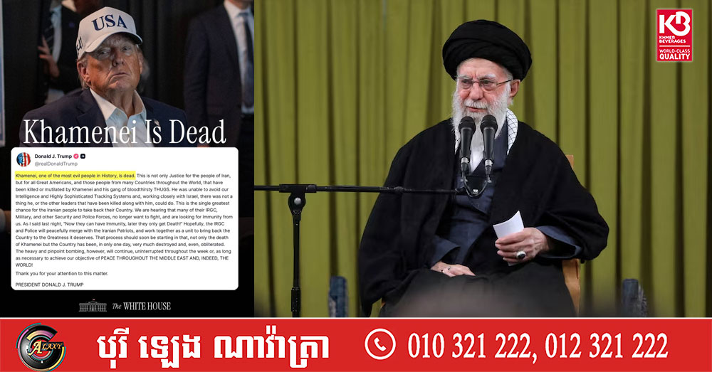 BREAKING: លោក ដូណាល់ ត្រាំ ប្រកាសថាមេដឹកនាំកំពូលអ៉ីរ៉ង់ លោក Ayatollah Ali Khamenei ត្រូវបានសម្លាប់ (Video inside)