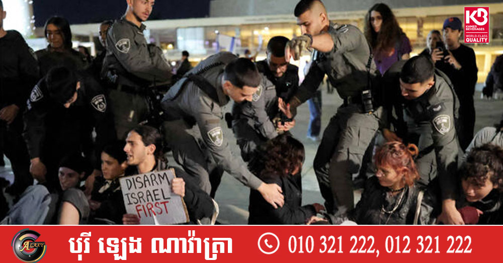 (តេអវីវ)៖ នាថ្ងៃសៅរ៍នេះ បាតុកររាប់រយនាក់បានប្រមូលផ្តុំគ្នានៅទីក្រុងតេអវីវ និងទីក្រុងមួយចំនួនទៀតក្នុងប្រទេសអ៉ីស្រាអែល ដើម្បីធ្វើការតវ៉ាប្រឆាំងនឹងសង្គ្រាមនៅមជ្ឈិមបូព៌ា ដែលជាការជួបជុំដោយមិនមានការអនុញ្ញាត ហើយត្រូវបានកម្លាំងសន្តិសុខព្យាយាមបំបែកដោយបង្ខំ។ នេះបើតាមការចេញផ្សាយដោយ ទីភ្នាក់ងារព័ត៌មាន AFP។