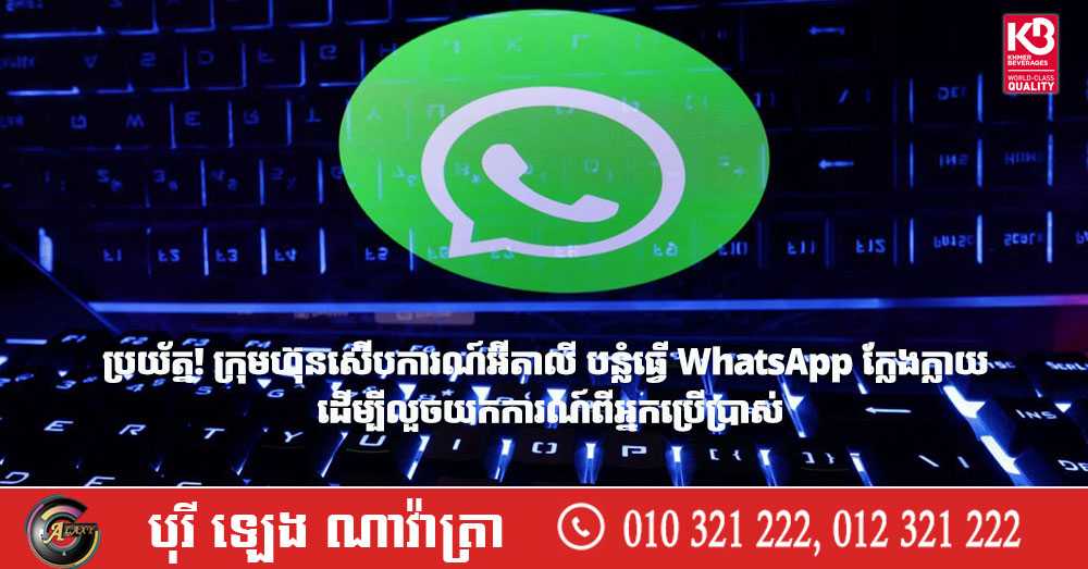 (បរទេស)៖ កម្មវិធី WhatsApp ដែលជាសេវាកម្មផ្ញើសាររបស់ក្រុមហ៊ុន Meta Platforms បានឱ្យដឹងថា ក្រុមហ៊ុនស៊ើបការណ៍សម្ងាត់របស់អ៊ីតាលីមួយ បានបោកបញ្ឆោតអ្នកប្រើប្រាស់ប្រហែល ២០០នាក់ ឱ្យទាញយកកម្មវិធី WhatsApp ក្លែងក្លាយ ដែលត្រូវបានរៀបចំឡើង ដើម្បីលួចយកការណ៍ពីជនរងគ្រោះ។ នេះបើយោងតាមការចេញផ្សាយដោយសារព័ត៌មាន Reuters នៅថ្ងៃទី០២ ខែមេសា ឆ្នាំ២០២៦។