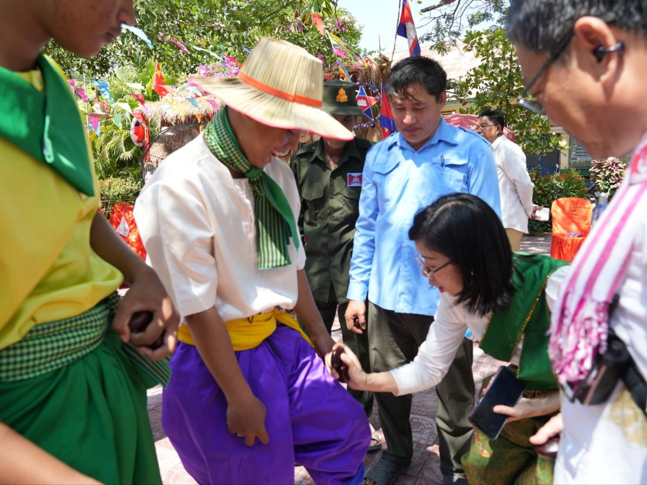ជាផ្នែកមួយនៃកម្មវិធី លោកស្រី វ៉ង យ៉ាហួយ បានបង្ហាញនូវអារម្មណ៍រីករាយ និងកិត្តិយសយ៉ាងខ្លាំង ដោយបានស្លៀកសម្លៀកបំពាក់បុរាណខ្មែរ និងចូលរួមទស្សនាការសម្តែងសិល្បៈបុរាណដ៏ចម្រុះ ដូចជា របាំត្រុដិ របាំក្ងោក និងរបាំឆៃយ៉ាំ ព្រមទាំងបានចូលរួមលេងល្បែងប្រពៃណីខ្មែរ រួមមាន បោះអង្គុញ ចោលឈូង និងលាក់កន្សែង។ ការសម្តែងទាំងនេះ ត្រូវបានអនុវត្តដោយគ្រូ និងសិស្សមកពីសាលាមធ្យមសិក្សាវិចិត្រសិល្បៈ ដែលបង្ហាញពីសមត្ថភាព និងការអភិរក្សបេតិកភណ្ឌវប្បធម៌ជាតិយ៉ាងល្អប្រសើរ។