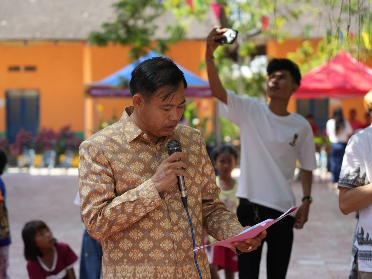(តាកែវ)៖ ព្រឹកថ្ងៃទី៥ ខែមីនា ឆ្នាំ២០២៦ នៅសាលាបឋមសិក្សាអង្គកំនប់ ស្ថិតនៅឃុំដូង ស្រុកបាទី ខេត្តតាកែវ ពិធី សង្ក្រាន្តមិត្តភាពកម្ពុជា-ចិន ត្រូវបានរៀបចំយ៉ាងអធិកអធម ក្រោមអធិបតីភាពឯកឧត្តម កឹមរ័ត្ន វិសិដ្ឋ រដ្ឋលេខាធិការ ទីស្តីការគណៈរដ្ឋមន្ត្រី និងជាប្រធានក្រុមប្រឹក្សាភិបាលវេទិកាសម្ព័ន្ធសង្គមស៊ីវិល។