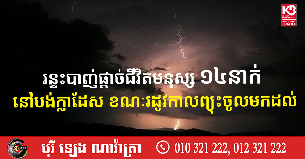 (ដាក្កា)៖ យ៉ាងហោចណាស់មនុស្សចំនួន ១៤នាក់ បានបាត់បង់ជីវិត បន្ទាប់ពីបាតុភូតរន្ទះ កើតឡើងនៅតំបន់ខ្លះនៃប្រទេសបង់ក្លាដែស ដោយមន្រ្តីនិយាយថា រដូវកាលព្យុះផ្គររន្ទះកំពុងមានឥទ្ធិពលទូទាំងប្រទេស។ នេះបើយោងតាមការចេញផ្សាយដោយទីភ្នាក់ងារសារព័ត៌មាន Reuters នាថ្ងៃចន្ទ ទី២៧ ខែមេសា ឆ្នាំ២០២៦។