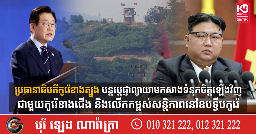 (សេអ៊ូល)៖ នាថ្ងៃចន្ទ ទី២៧ ខែមេសា ឆ្នាំ២០២៦ ប្រធានាធិបតីកូរ៉េខាងត្បូង លោក Lee Jae Myung បានប្តេជ្ញាថានឹងបន្តព្យាយាមកសាងទំនុកចិត្តឡើងវិញជាមួយកូរ៉េខាងជើង ព្រមទាំងលើកកម្ពស់សុខសន្តិភាពនៅឧបទ្វីបកូរ៉េ ហើយលោកបានអំពាវនាវឱ្យទីក្រុងព្យុងយ៉ាង ឆ្លើយតបចំពោះការផ្តួចផ្តើមរបស់ទីក្រុងសេអ៊ូល។ នេះបើតាមការចេញផ្សាយដោយ ទីភ្នាក់ងារព័ត៌មាន Yonhap។