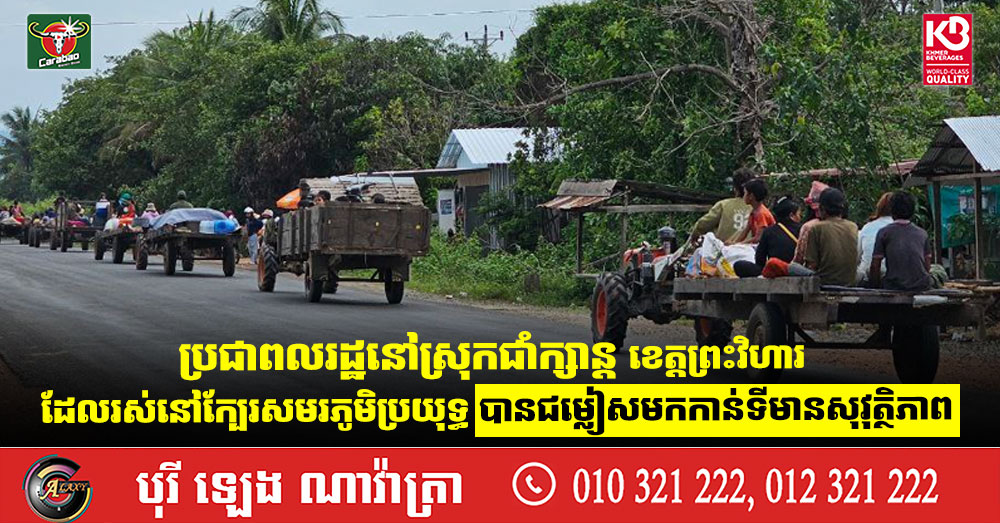ប្រជាពលរដ្ឋនៅស្រុកជាំក្សាន្ត ខេត្តព្រះវិហារ ដែលរស់នៅក្បែរសមរភូមិប្រយុទ្ធ បានជម្លៀសមកកាន់ទីមានសុវុត្ថិភាព (Video inside)