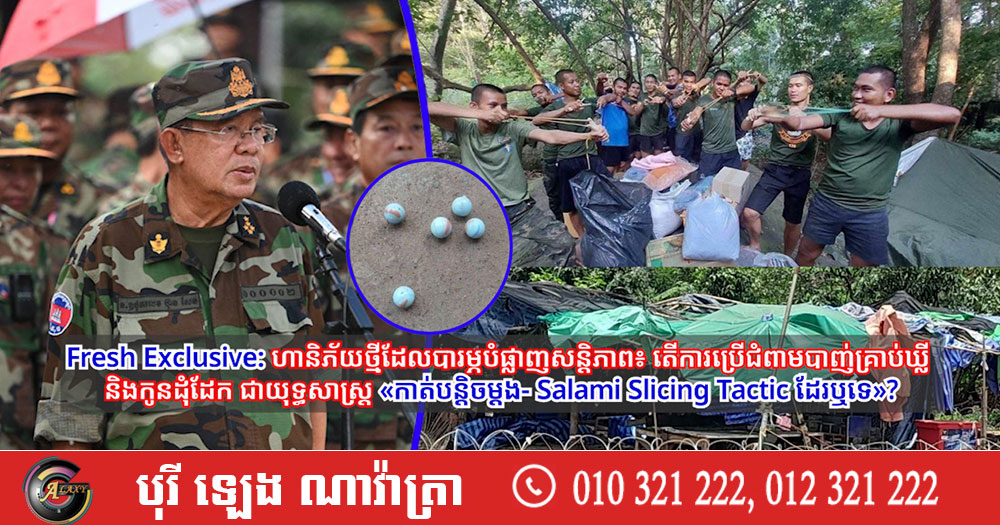 Fresh Exclusive: ហានិភ័យថ្មីដែលបារម្ភបំផ្លាញសន្តិភាព៖ តើការប្រើជំពាមបាញ់គ្រាប់ឃ្លី និងកូនដុំដែក ជាយុទ្ធ សាស្ត្រ «កាត់បន្តិចម្តង Salami Slicing Tactic» ដែរឬទេ?