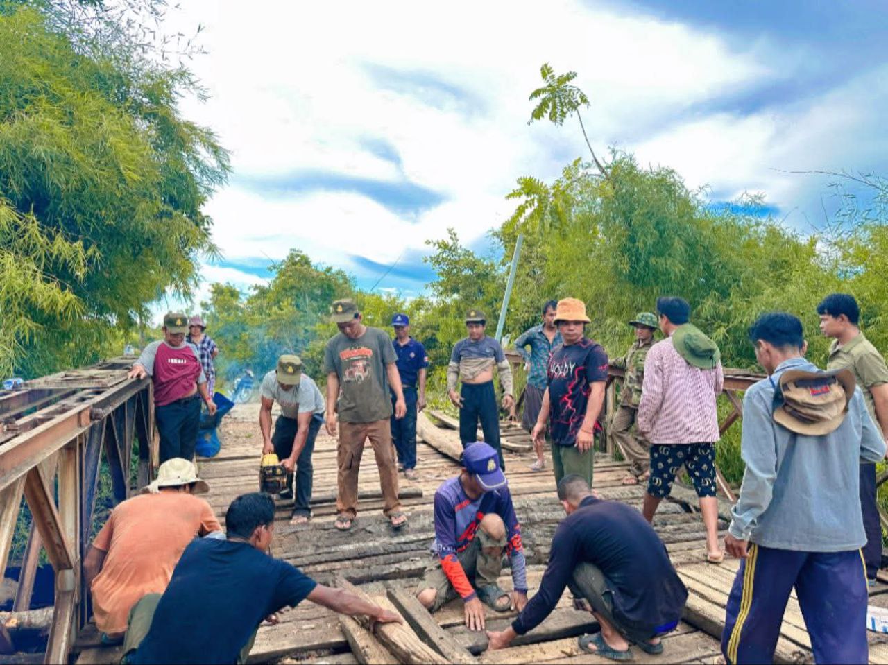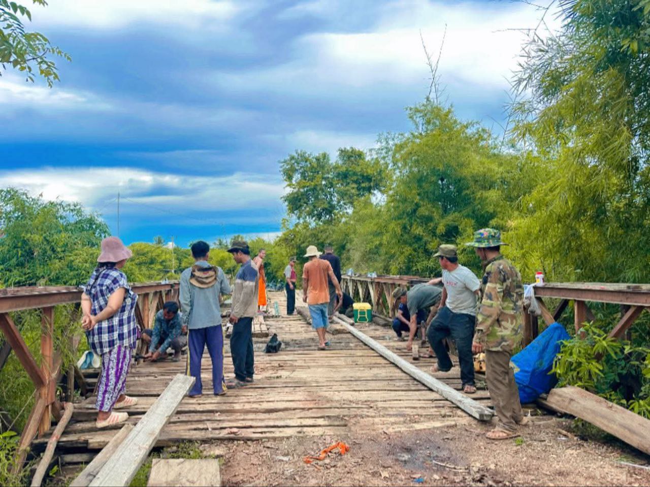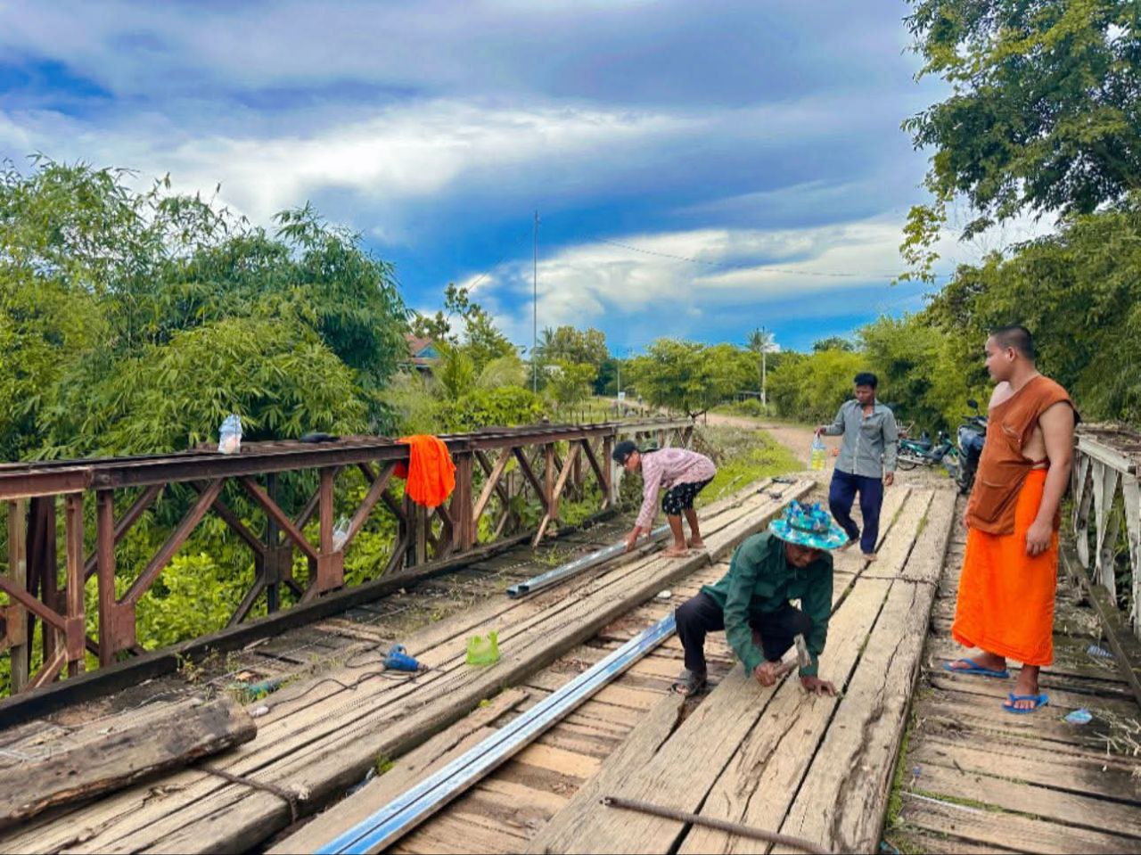 ព្រះគ្រូចៅអធិកា វត្តមុនីវណ្ណារាម ដឹកនាំប្រជាពលរដ្ឋជួសជុលស្ពានឈើមួយកន្លែង ប្រើបណ្ដោះអាសន្នសម្រួលការធ្វើដំណើរ ក្នុងស្រុកចិត្របុរី