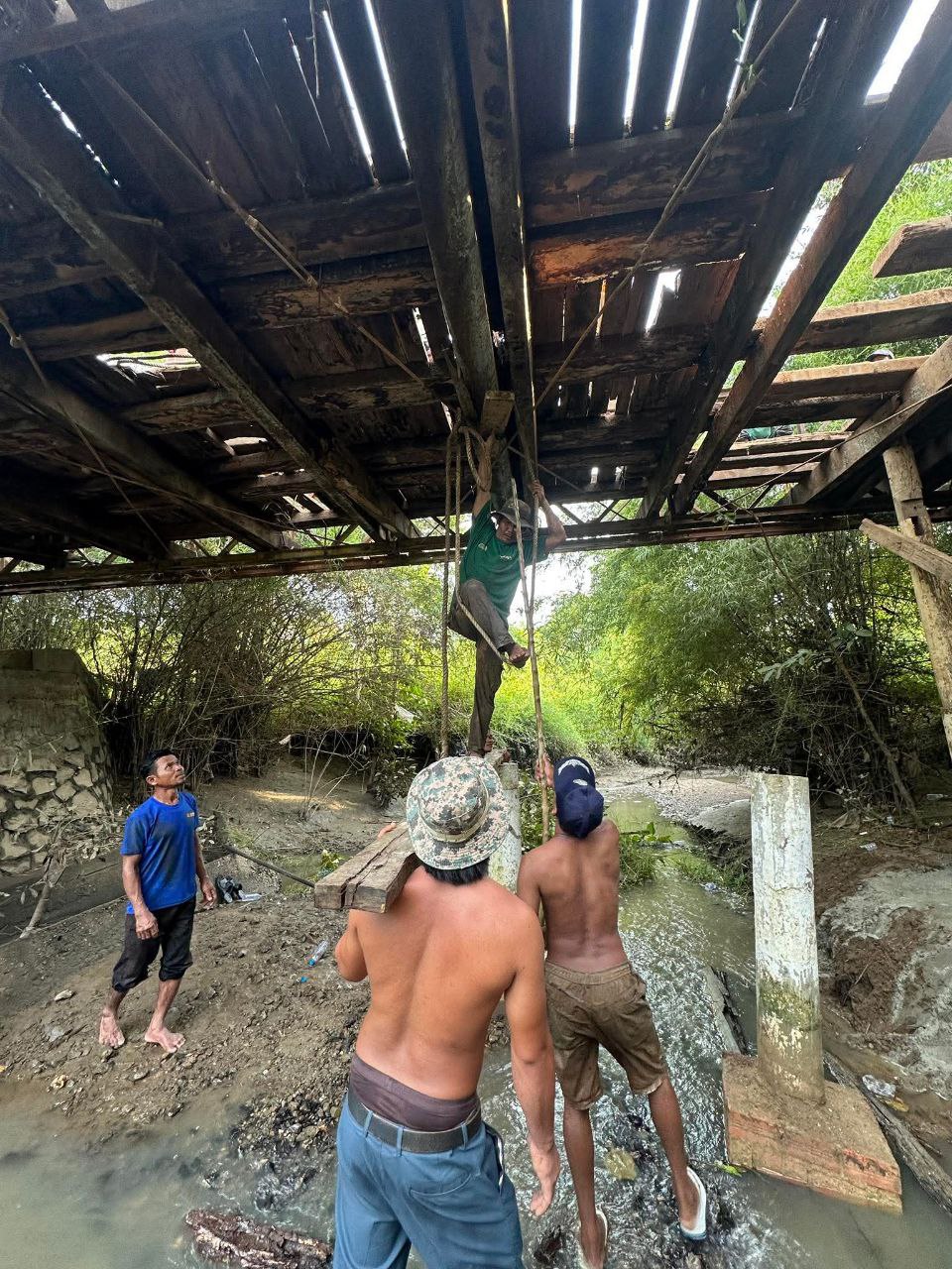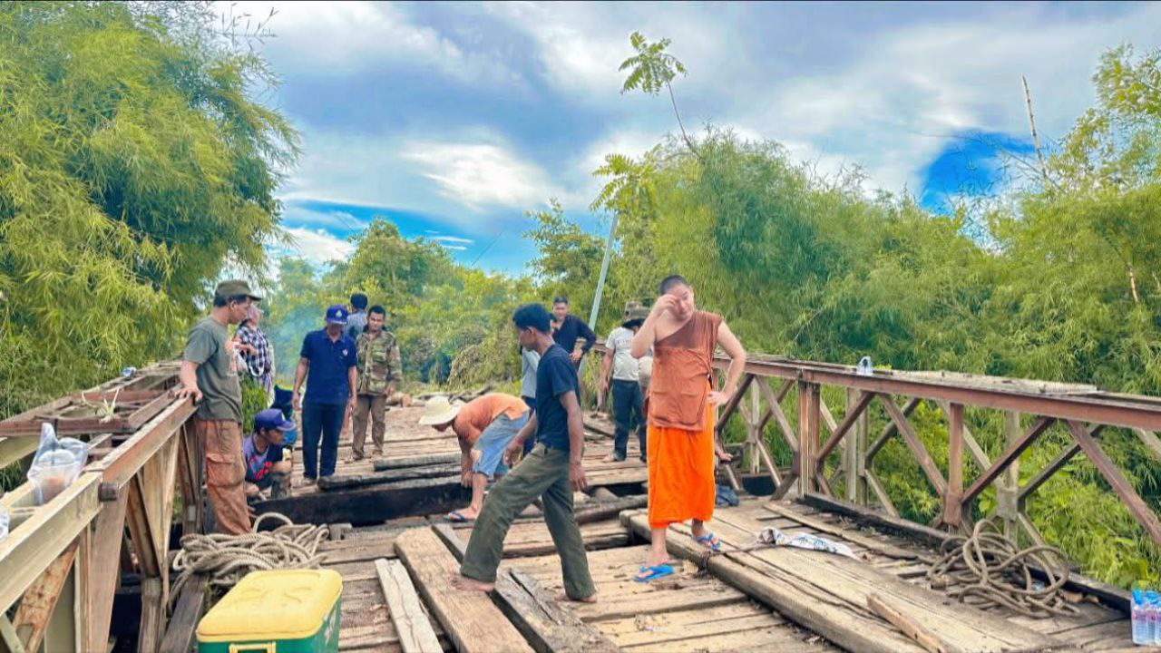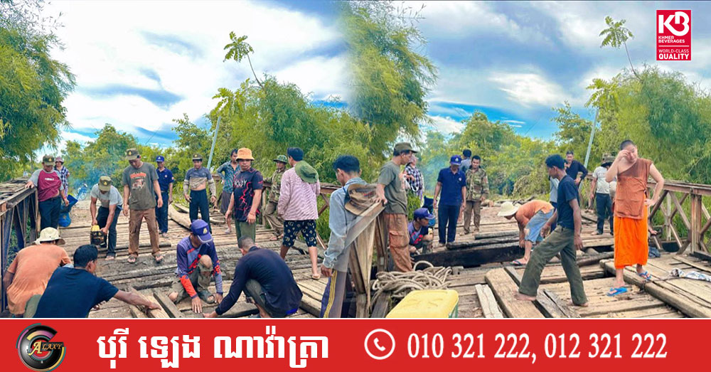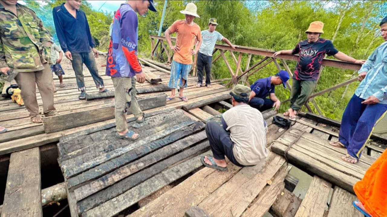 ព្រះគ្រូចៅអធិកា វត្តមុនីវណ្ណារាម ដឹកនាំប្រជាពលរដ្ឋជួសជុលស្ពានឈើមួយកន្លែង ប្រើបណ្ដោះអាសន្នសម្រួលការធ្វើដំណើរ ក្នុងស្រុកចិត្របុរី