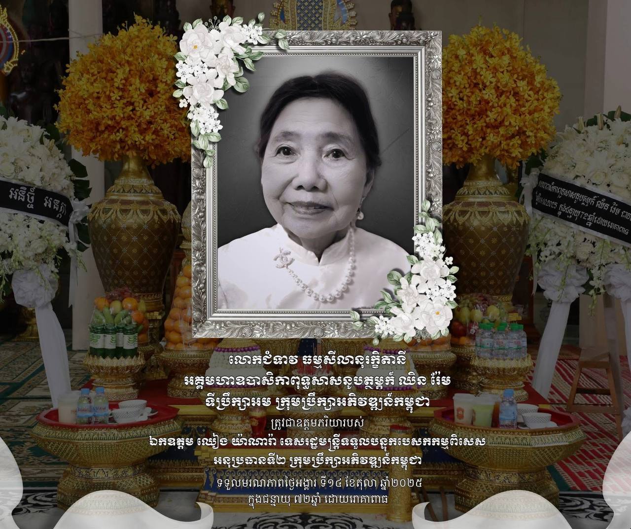 ឯកឧត្តម ឈៀង យ៉ាណារ៉ា បានសរសេរបញ្ជាក់ថា «ខ្ញុំព្រះករុណា ខ្ញុំ ឈៀង យ៉ាណារ៉ា និងក្រុមគ្រួសារនៃសព លោកជំទាវ ធម្មសីលានុរក្ខិតានី អគ្គមហាឧបាសិកាពុទ្ធសាសនូបត្ថម្ភក៍ ឈិន រ៉ែម ទីប្រឹក្សាអមក្រុមប្រឹក្សាអភិវឌ្ឍន៍កម្ពុជា សូមគោរពថ្លែងអំណរព្រះតេជព្រះគុណ ព្រះថេរានុត្ថេរគ្រប់ព្រះអង្គជាទីសក្ការៈ និងសូមគោរព អរគុណយ៉ាងជ្រាលជ្រៅបំផុតដល់ សម្តេច ទ្រង់ ឯកឧត្តម លោកជំទាវ លោកអ្នកឧកញ៉ា អ្នកឧកញ៉ា ឧកញ៉ា លោក លោកស្រី អ្នកនាងកញ្ញា និងញាតិមិត្តជិតឆ្ងាយទាំងអស់ ដែលបាន និមន្ត និងអញ្ជើញចូលរួមក្នុងពិធីបុណ្យសព និងបុណ្យទក្ខិណានុប្បទានគម្រប់ ៧ថ្ងៃ របស់ លោកជំទាវ ធម្មសីលានុរក្ខិតានី អគ្គមហាឧបាសិកាពុទ្ធសាសនូបត្ថម្ភក៍ ឈិន រ៉ែម ទីប្រឹក្សាអម ក្រុមប្រឹក្សាអភិវឌ្ឍន៍កម្ពុជា ដែលត្រូវជាឧត្តមភរិយា ម្តាយបង្កើត ម្តាយក្មេក និងជីដូនរបស់ យើងខ្ញុំទាំងអស់គ្នា ដែលបានទទួលមរណភាព កាលពីថ្ងៃអង្គារ ៧រោច ខែអស្សុជ ឆ្នាំម្សាញ់ សប្តស័ក ព.ស.២៥៦៩ ត្រូវនឹងថ្ងៃទី១៤ ខែតុលា ឆ្នាំ២០២៥ វេលាម៉ោង ៦:០០ នាទីព្រឹក ក្នុងជន្មាយុ ៧២ឆ្នាំ ដោយជរាពាធ»។