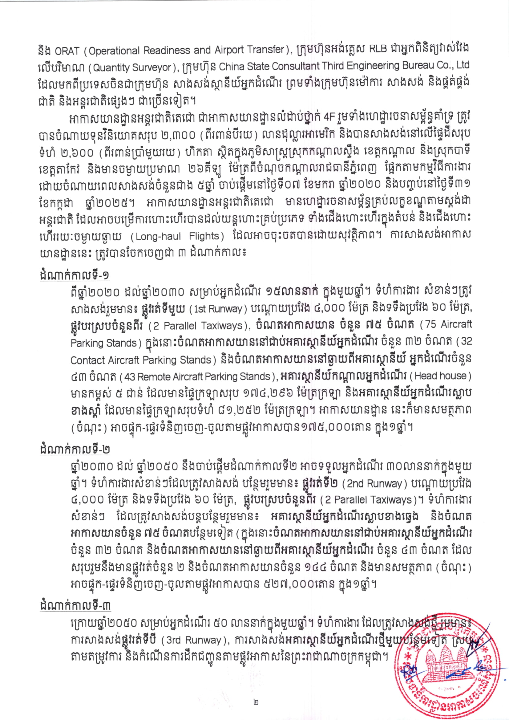 លោកបានលើកឡើងថា ដោយសារអាកាសយានដ្ឋានអន្តរជាតិភ្នំពេញ មានលក្ខណៈតូចចង្អៀត និងទីតាំងទៀតសោធស្ថិតនៅកណ្តាលរាជធានីភ្នំពេញ ដែលមិនអាចធ្វើ ការអភិវឌ្ឍ និងពង្រីកតំបន់អាកាសយានដ្ឋាននេះបាន ទើបរាជរដ្ឋាភិបាលកម្ពុជាបានសម្រេចធ្វើការ អភិវឌ្ឍសាងសង់ អាកាសយានដ្ឋានអន្តរជាតិតេជោ ជំនួសឱ្យអាកាសយានដ្ឋានអន្តរជាតិភ្នំពេញវិញ ដើម្បីឆ្លើយតបបានទៅនឹងតម្រូវការកំណើនការដឹកជញ្ជូនតាមផ្លូវអាកាស សម្រាប់រយៈពេលមធ្យម និងរយៈពេលវែង។