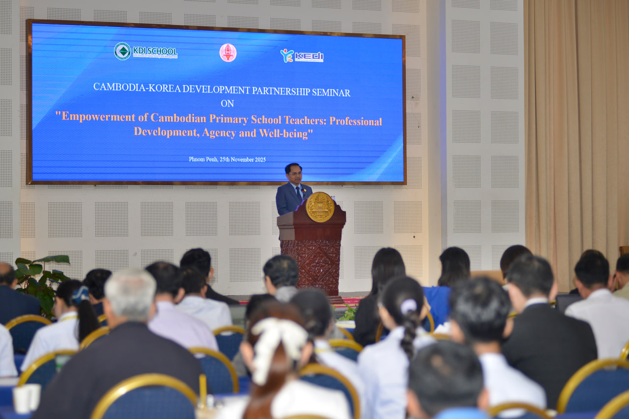 (ភ្នំពេញ)៖ រាជបណ្ឌិត្យសភាកម្ពុជា (RAC) បានសហការជាមួយវិទ្យាស្ថានអភិវឌ្ឍន៍កូរ៉េ (KDI) និងវិទ្យាស្ថានកូរ៉េសម្រាប់ការអភីវឌ្ឍន៍ការអប់រំ (KEDI) នៅថ្ងៃទី២៥ ខែវិច្ឆិកា ឆ្នាំ២០២៥នេះ បានសហការគ្នារៀបចំសិក្ខាសាលាភាពជាដៃគូអភិវឌ្ឍកូរ៉េ-កម្ពុជា ស្តីពី «ការលើកកម្ពស់គ្រូបង្រៀនបឋមសិក្សា៖ គន្លងអាជីព ភាពធន់ និងសុខុមាលភាពគ្រូបង្រៀន»។