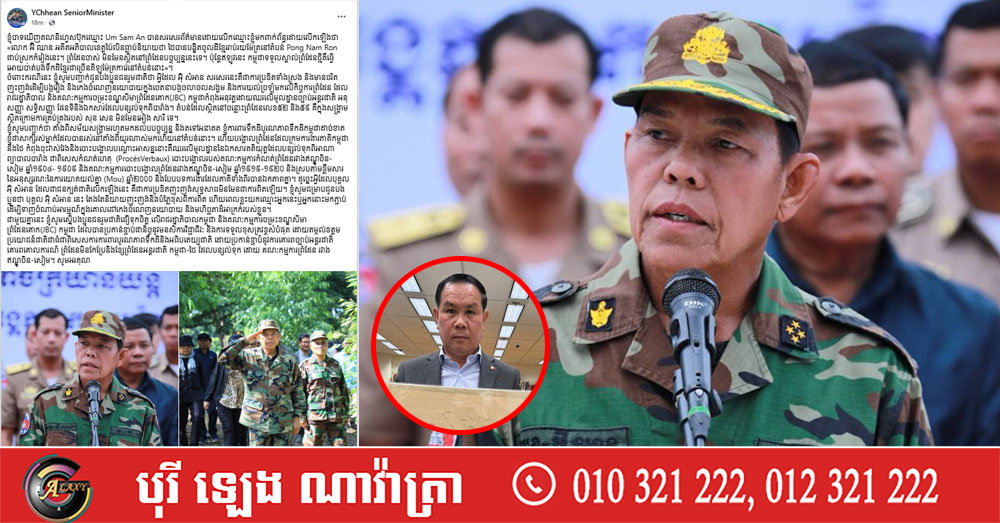(ភ្នំពេញ)៖ លោក អ៉ី ឈាន ទេសរដ្ឋមន្ត្រី និងជាអតីតអភិបាលខេត្តប៉ៃលិន នៅព្រឹកថ្ងៃទី២៧ ខែវិច្ឆិកា ឆ្នាំ២០២៥នេះ បានឆ្លើយតបនឹងការបង្ហោះផ្សាយមិនពិតរបស់ លោក អ៊ុំ សំអាន ដែលជាប់ចោទពីបទក្បត់ជាតិ និងធ្លាប់ជាប់គុកដោយសារតែប្រើផែនទីក្លែងក្លាយ។