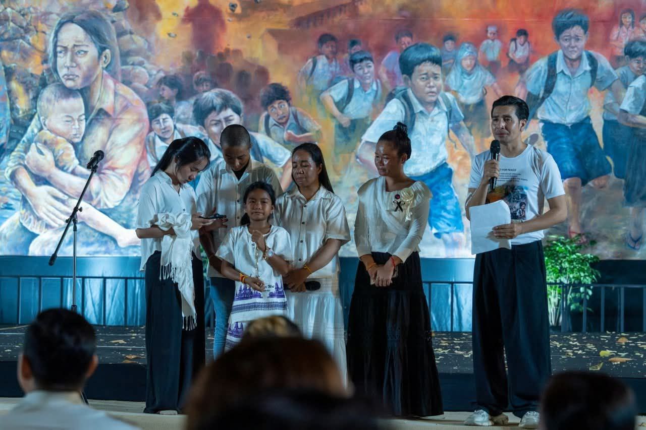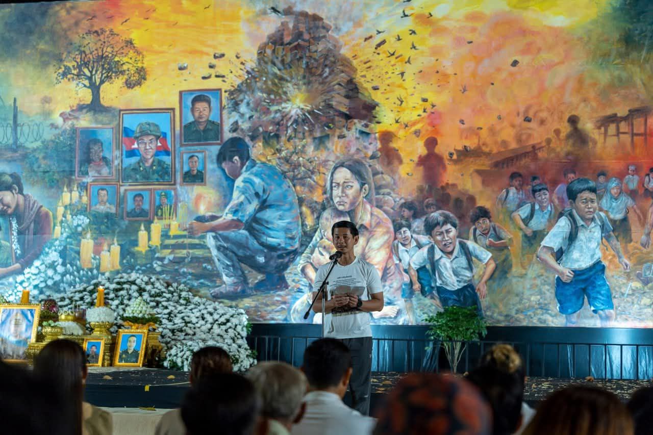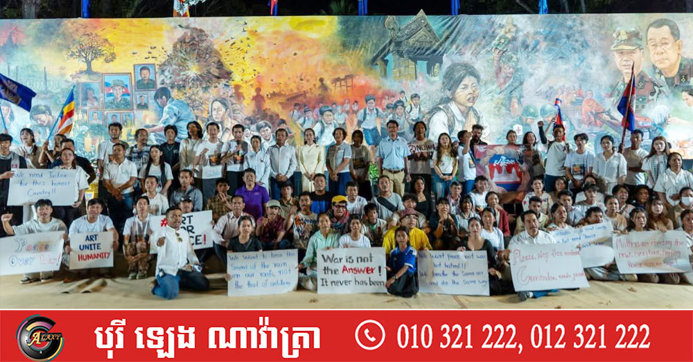 សម្ភោធផ្ទាំងគំនូរ «សិល្បៈដើម្បីសន្តិភាព» ដើម្បីបង្ហាញពីការពិត និងការឈឺចាប់នៃសង្គ្រាម ដែលកំពុងកើតមានឡើងដោយការឈ្លានពានរបស់កងទ័ពថៃ មកលើដែនអធិបេតយ្យកម្ពុជា