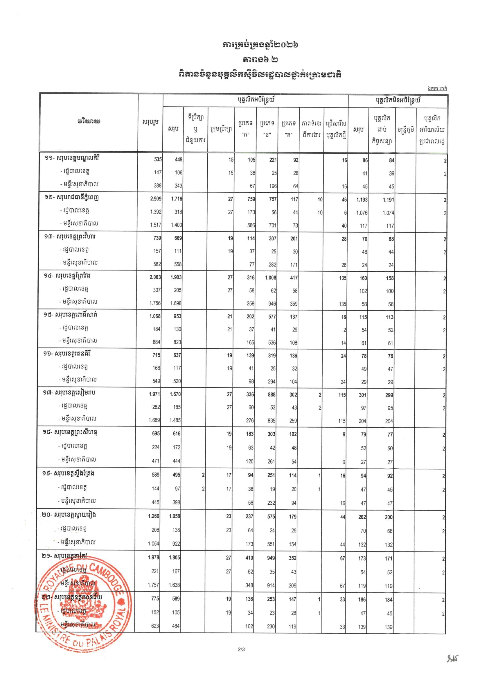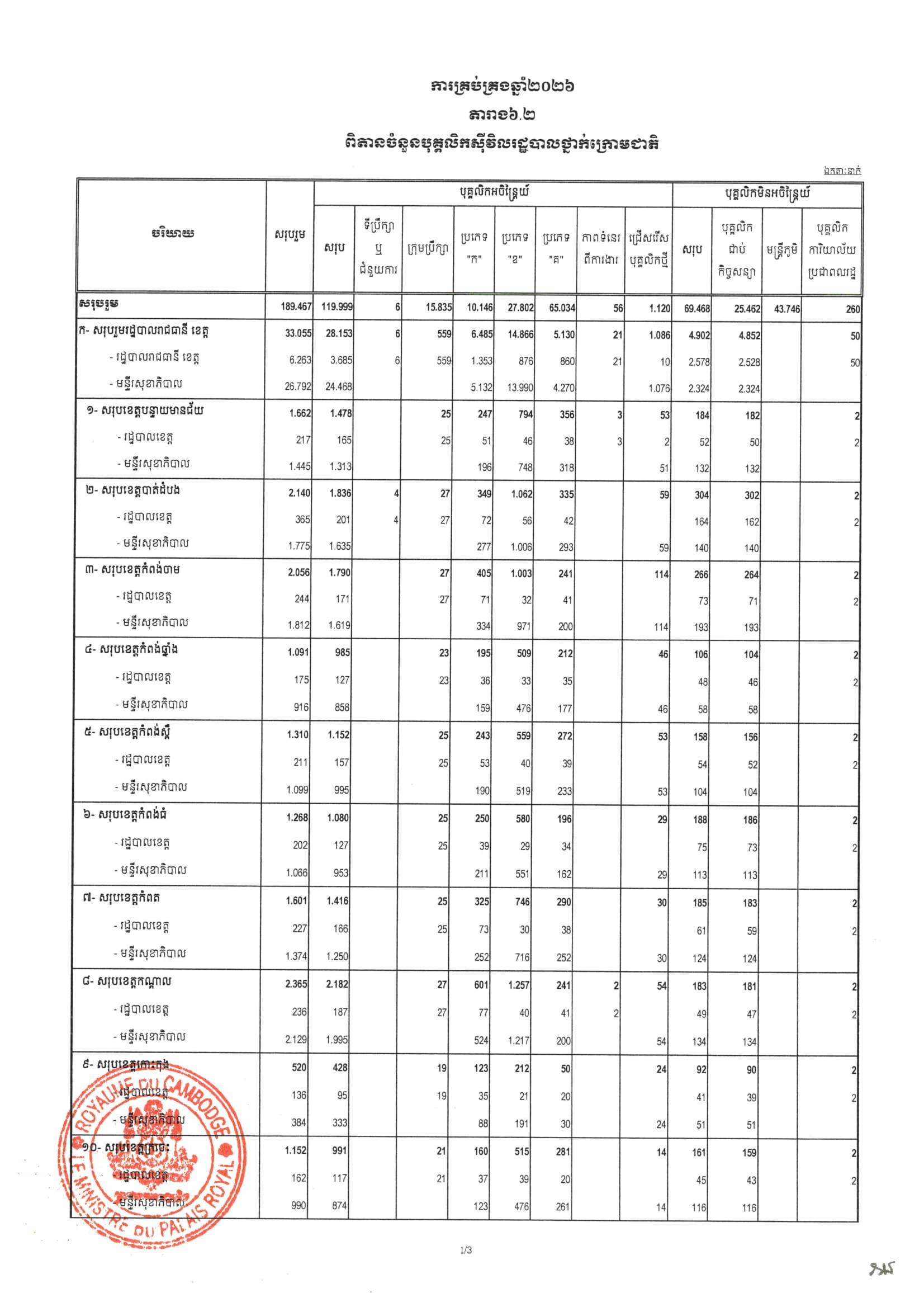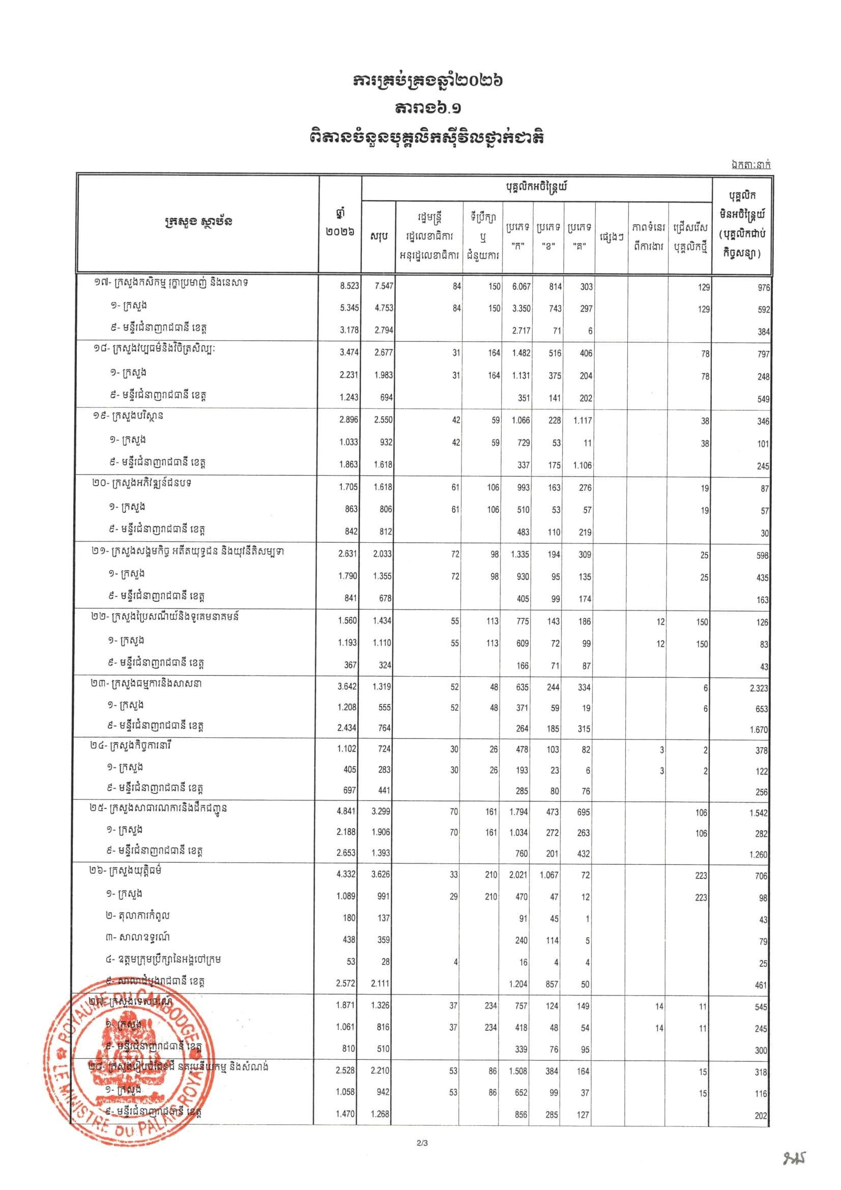 (ភ្នំពេញ)៖ ច្បាប់ ស្ដីពីហិរញ្ញវត្ថុសម្រាប់ការគ្រប់គ្រងឆ្នាំ២០២៦ ត្រូវបានព្រះករុណា ព្រះបាទ សម្តេចព្រះបរមនាថ នរោត្តម សីហមុនី ព្រះមហាក្សត្រនៃកម្ពុជា ចេញព្រះរាជក្រមប្រកាសឱ្យប្រើ។