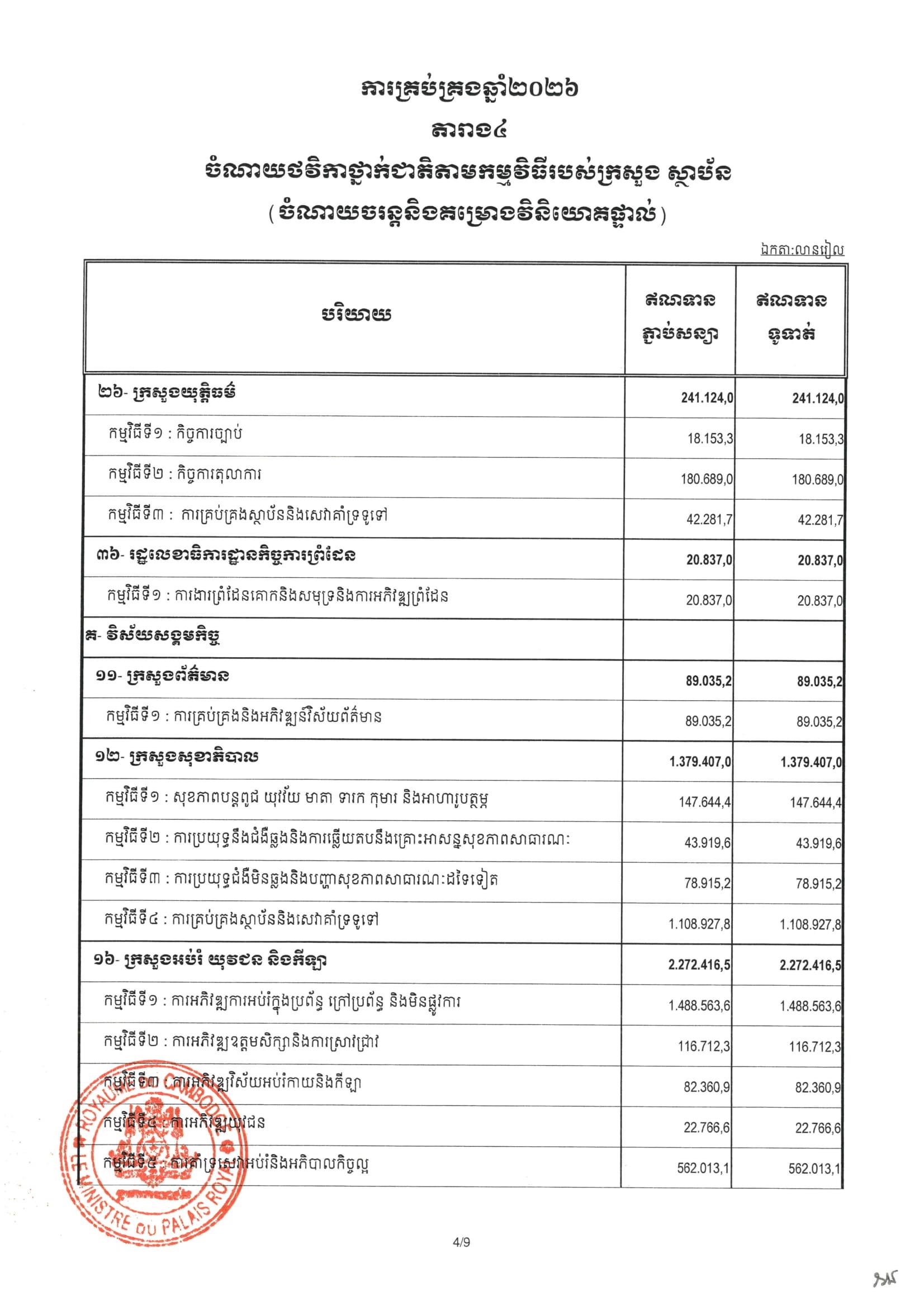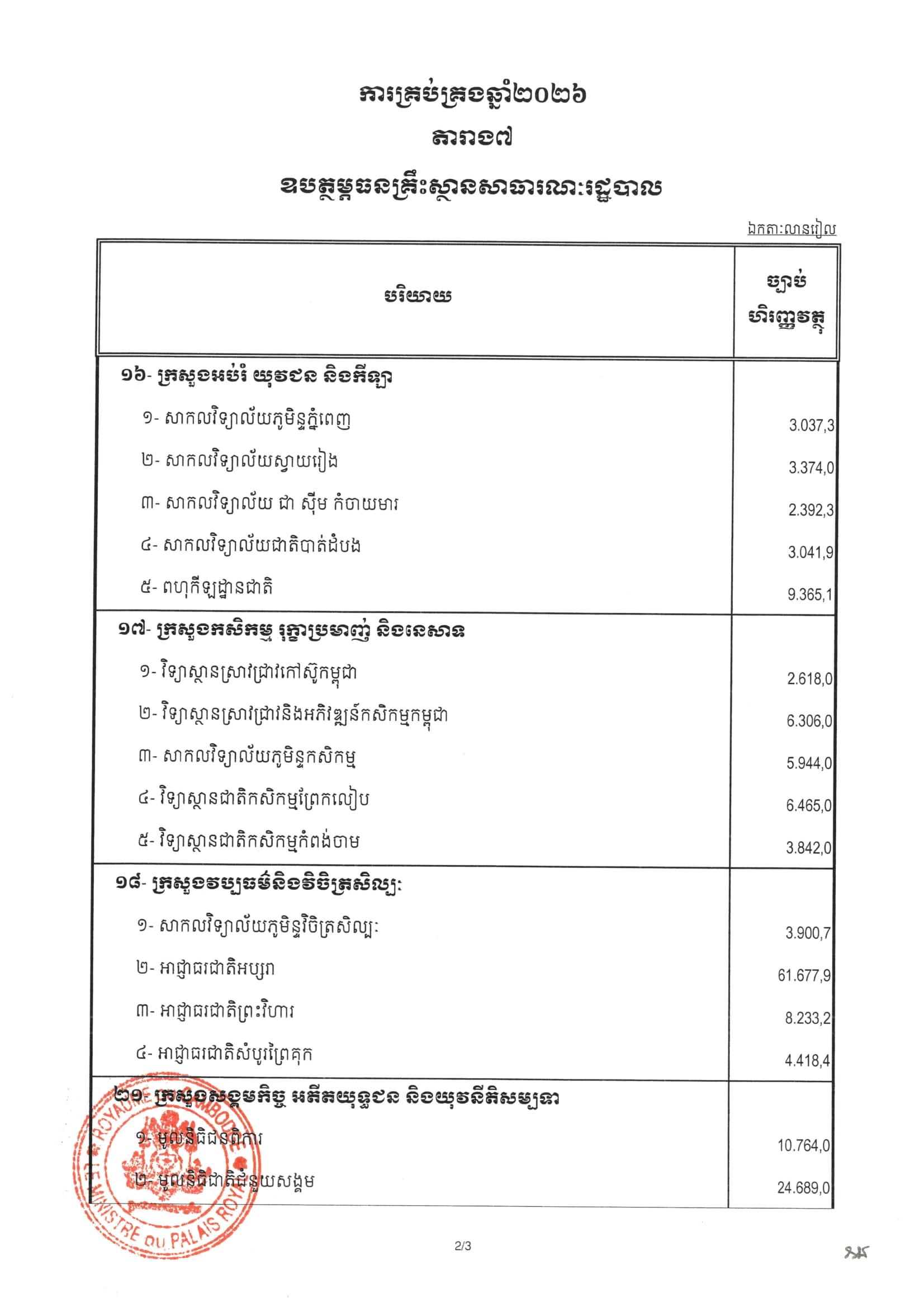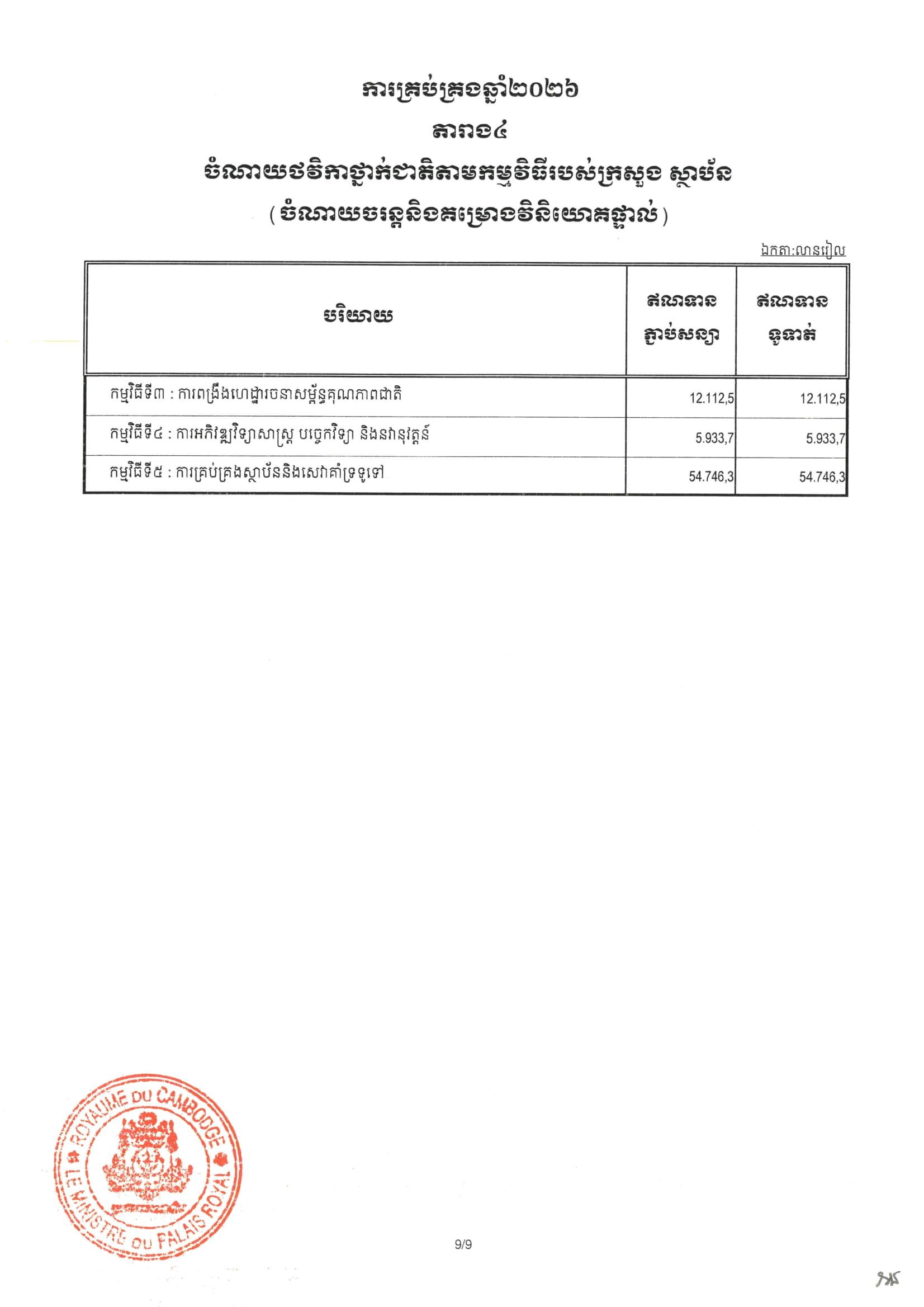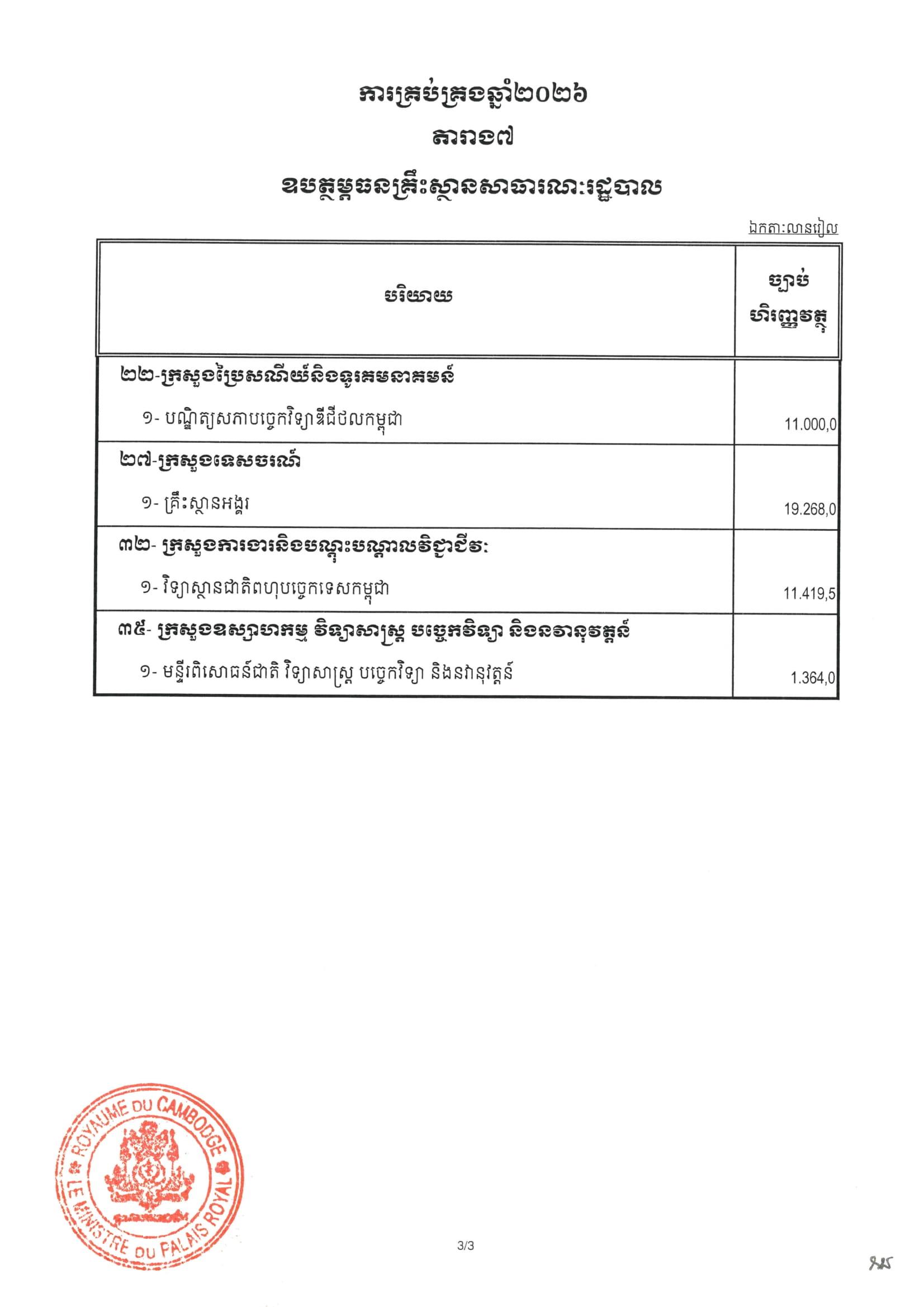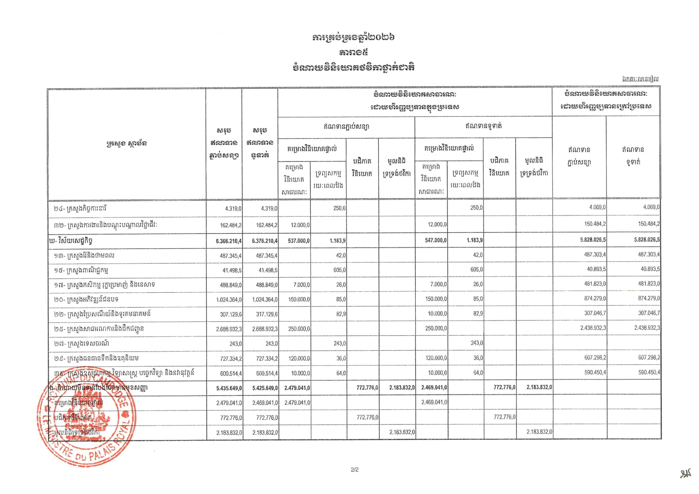 ច្បាប់ ស្ដីពីហិរញ្ញវត្ថុសម្រាប់ការគ្រប់គ្រងឆ្នាំ២០២៦ ដែលផ្តល់អាទិភាព លើការពង្រឹងសមត្ថភាពការពារអធិបតេយ្យជាតិ និងបូរណភាពទឹកដី ត្រូវបានព្រះមហាក្សត្រប្រកាសឱ្យប្រើ
