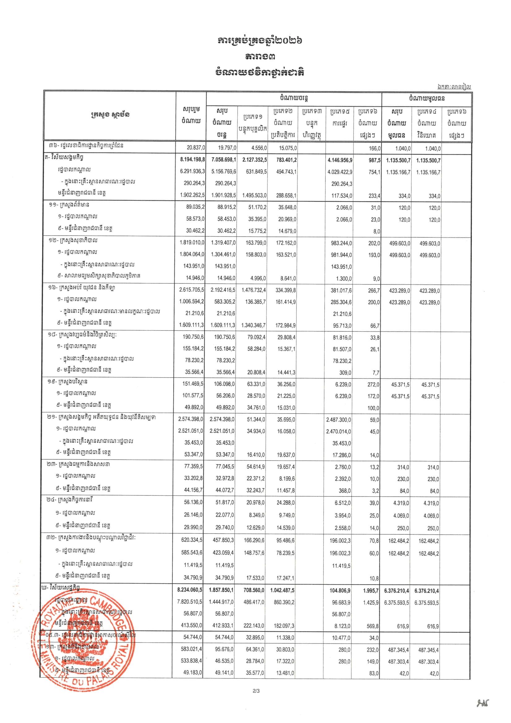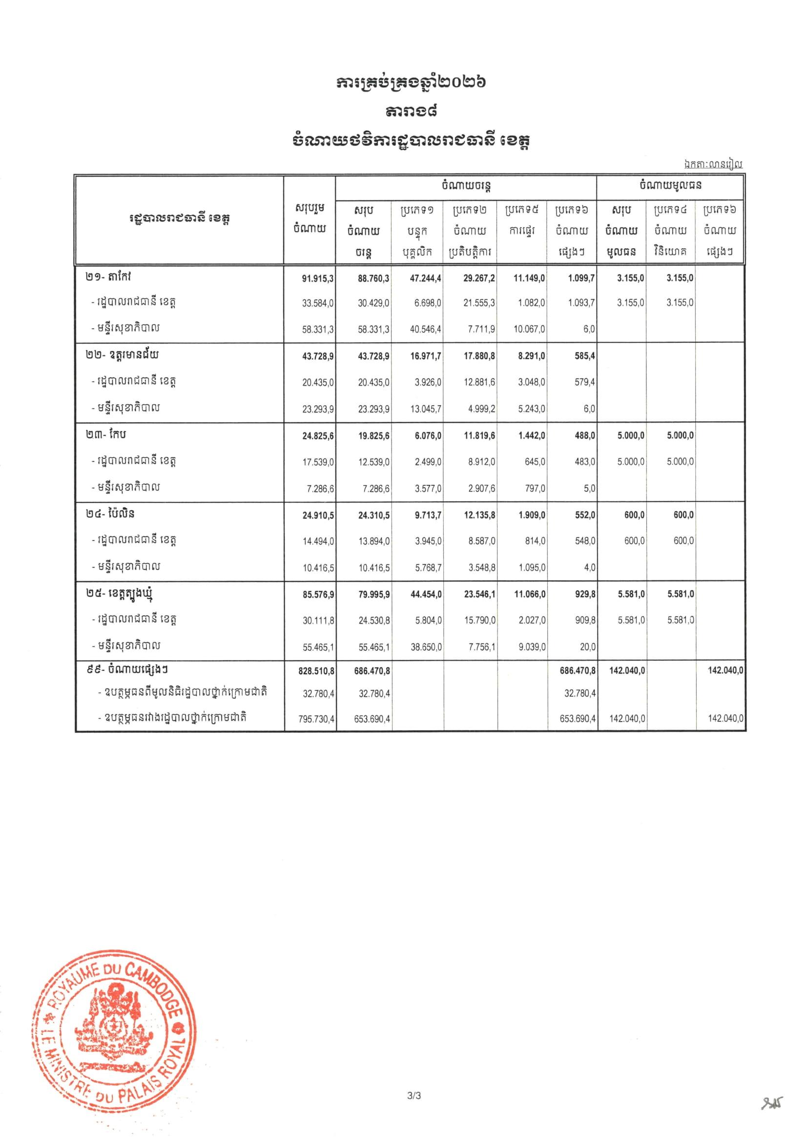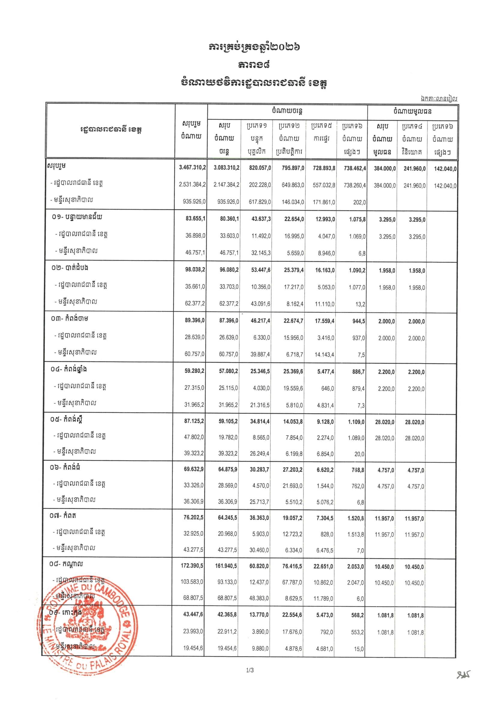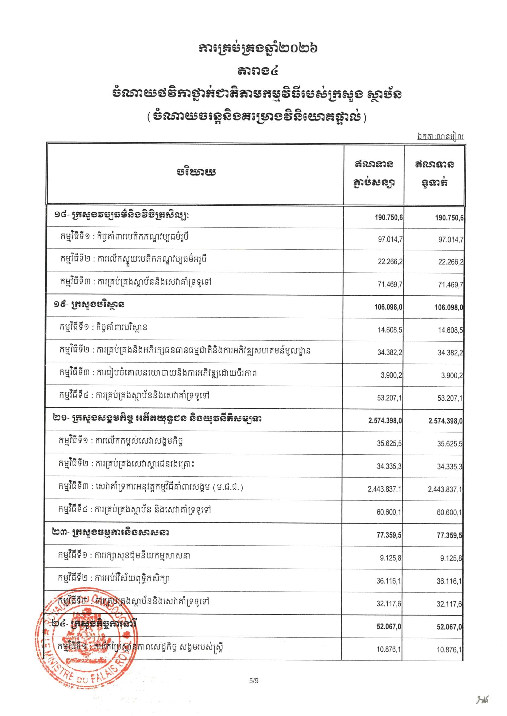 ច្បាប់ ស្តីពីហិរញ្ញវត្ថុសម្រាប់ការគ្រប់គ្រងឆ្នាំ២០២៦ ដែលគ្រោងចំណាយថវិការដ្ឋសរុបចំនួន ៤០ ៩១៣ប៊ីលានរៀល ស្មើនឹងប្រមាណ ១០ពាន់លានដុល្លារ ត្រូវបានរាជរដ្ឋាភិបាលដោយផ្តល់អាទិភាព លើការពង្រឹងសមត្ថភាពការពារអធិបតេយ្យជាតិ និងបូរណភាពទឹកដី៕