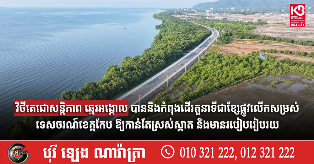 (ភ្នំពេញ)៖ វិថីតេជោសន្តិភាពឆ្នេរអង្កោល បាននិងកំពុងដើរតួនាទីជាខ្សែផ្លូវលើកសម្រស់ទេសចរណ៍ខេត្តកែប ឱ្យកាន់តែស្រស់ស្អាត និងមានរបៀបរៀបរយ តាមរយៈការបង្កើតឱ្យមានចំណតរថយន្ត ផ្លូវជិះកង់ និងផ្លូវថ្មើរជើងសម្រាប់ការដើរកម្សាន្តរបស់បងប្អូនប្រជាពលរដ្ឋ និងភ្ញៀវទេសចរជាតិ-អន្តរជាតិនានា។
