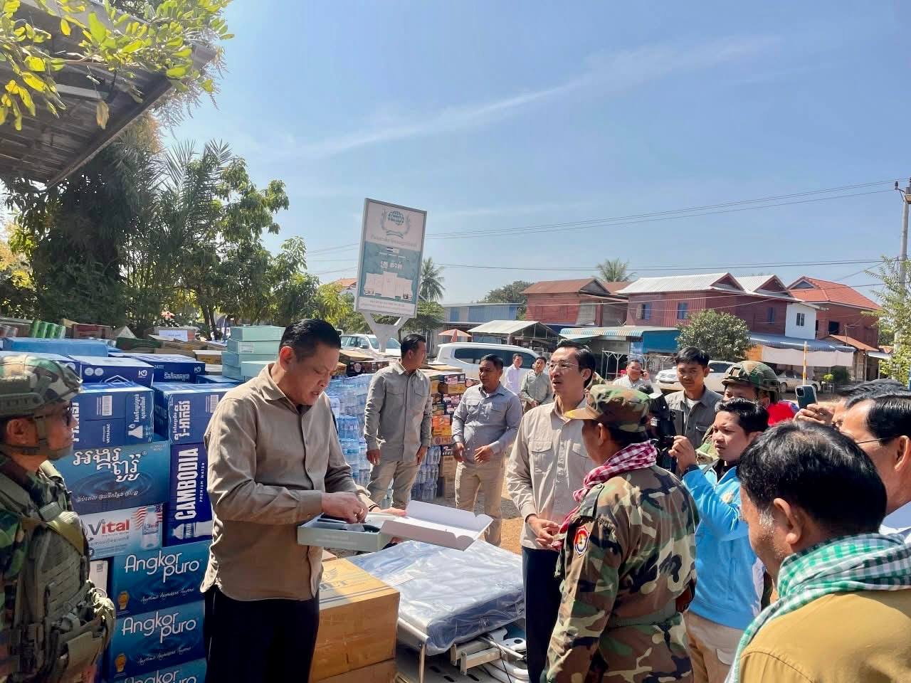 អភិបាលខេត្តត្បូងឃ្មុំ ដឹកនាំប្រតិភូ ចុះសួរសុខទុក្ខ និងនាំយកអំណោយជាគ្រឿងឧបភោគបរិភោគ សម្ភារប្រើប្រាស់ជាច្រើនមុខ និងថវិកា ជូនដល់កងទ័ព និងពលរដ្ឋភៀសសឹកនៅទិសឧត្តរមានជ័យ