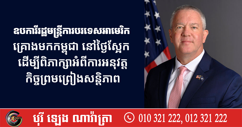 ឧបការីរដ្ឋមន្ត្រីការបរទេសអាមេរិក គ្រោងមកកម្ពុជា នៅថ្ងៃស្អែក ដើម្បីពិភាក្សាអំពីការអនុវត្តកិច្ចព្រមព្រៀងសន្តិភាព