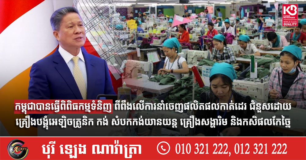 កម្ពុជាបានធ្វើពិពិធកម្មទំនិញ ពីពឹងលើការនាំចេញផលិតផលកាត់ដេរ ជំនួសដោយគ្រឿងបង្គុំអេឡិចត្រូនិក កង់ សំបកកង់យានយន្ត គ្រឿងសង្ហារិម និងកសិផលកែច្នៃ (Video inside)