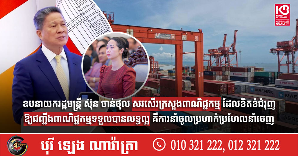 ឧបនាយករដ្ឋមន្រ្តី ស៊ុន ចាន់ថុល សរសើរក្រសួងពាណិជ្ជកម្ម ដែលខិតខំជំរុញឱ្យជញ្ជីងពាណិជ្ជកម្មទទួលបានលទ្ធល្អ គឺការនាំចូលប្រហាក់ប្រហែលនាំចេញ (Video inside)